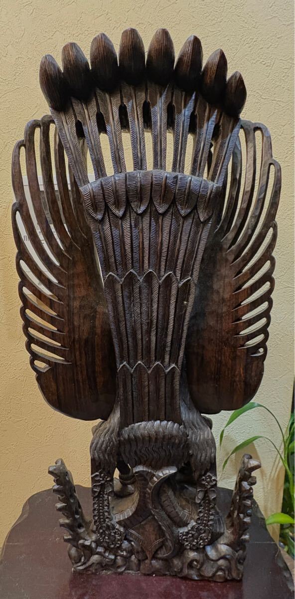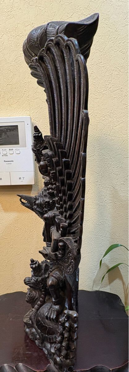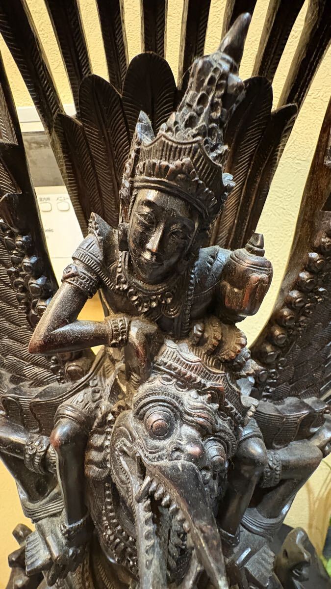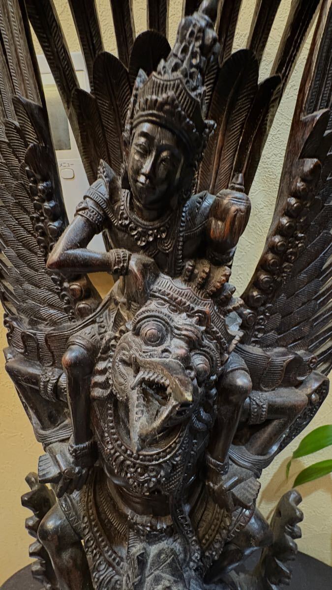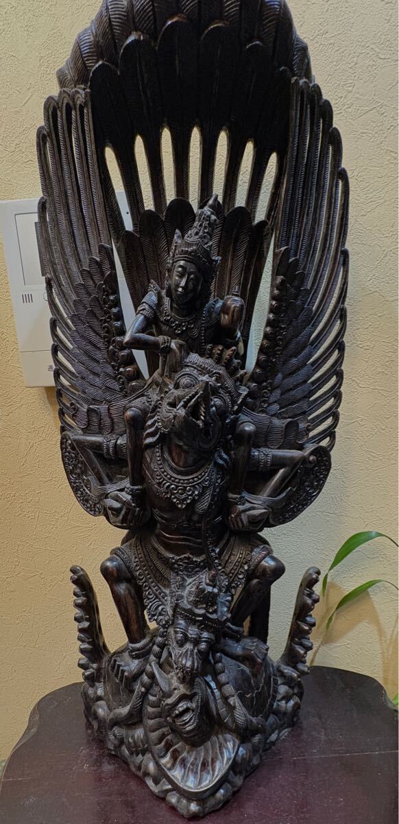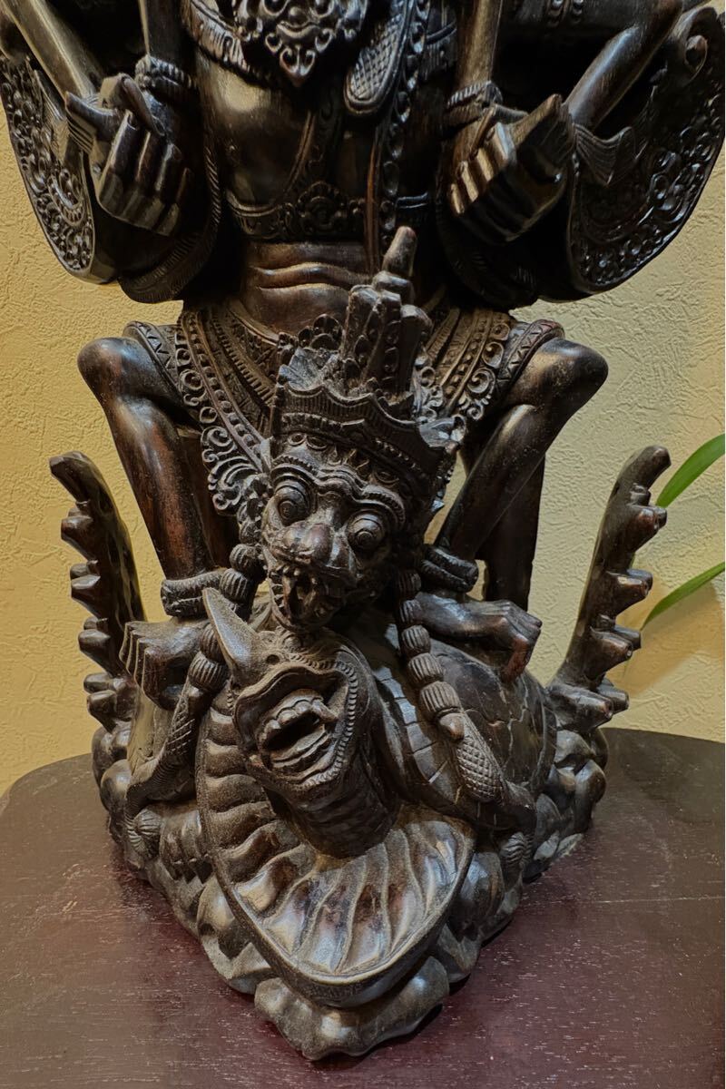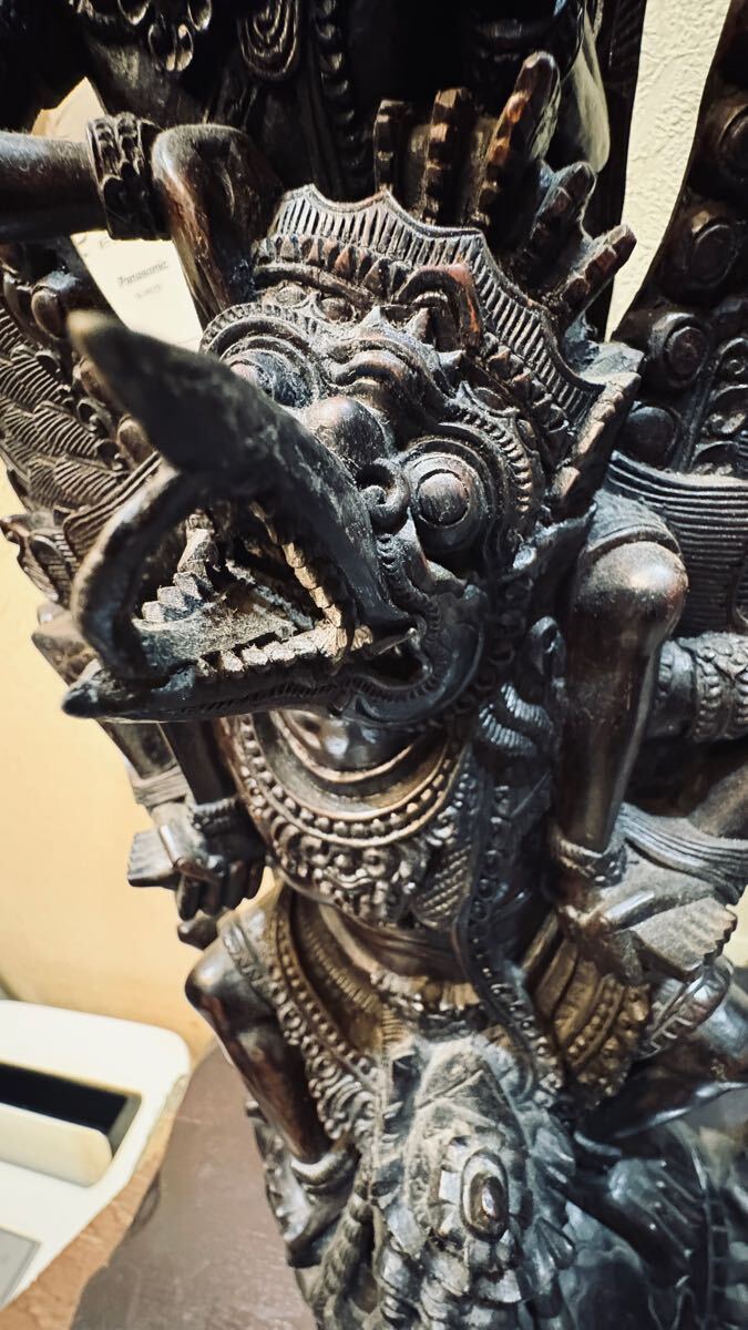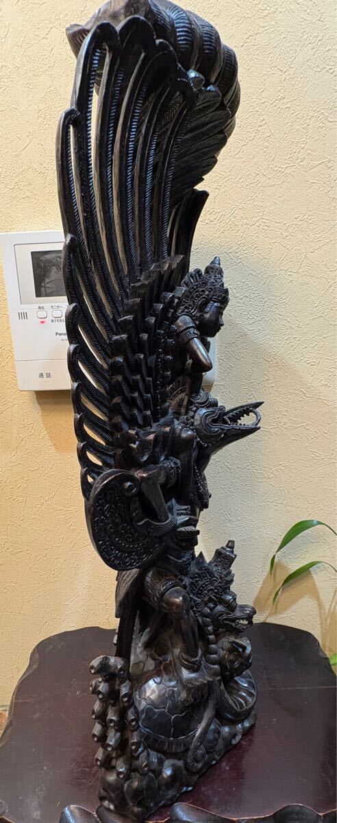古いバリ島の黒檀の細密彫りのガルーダに乗るヴィシュヌ神です。