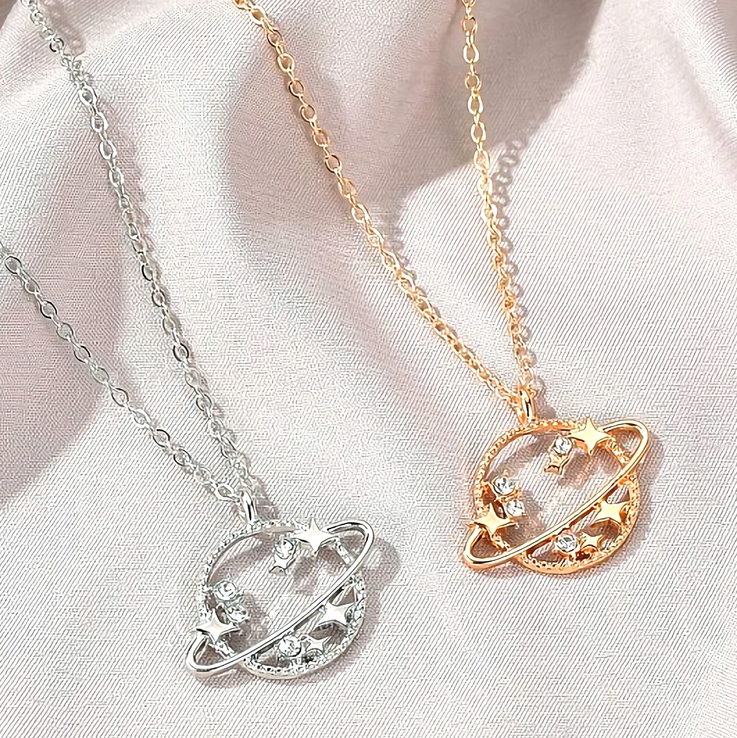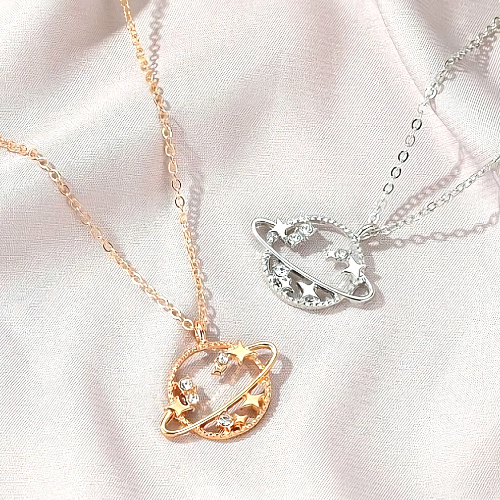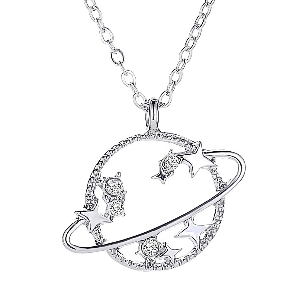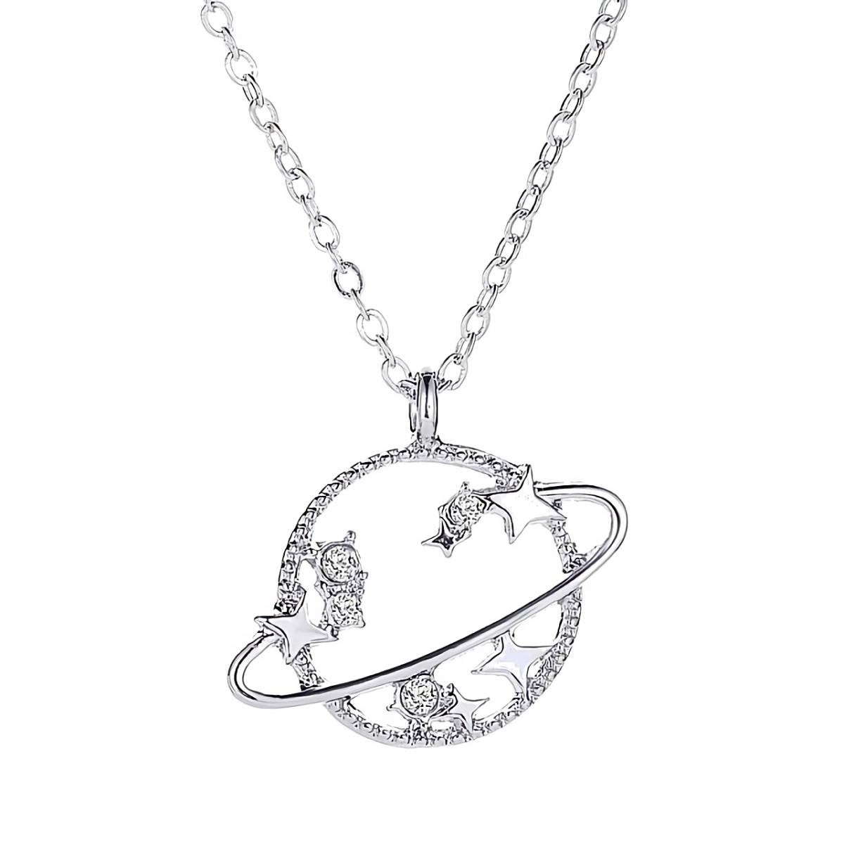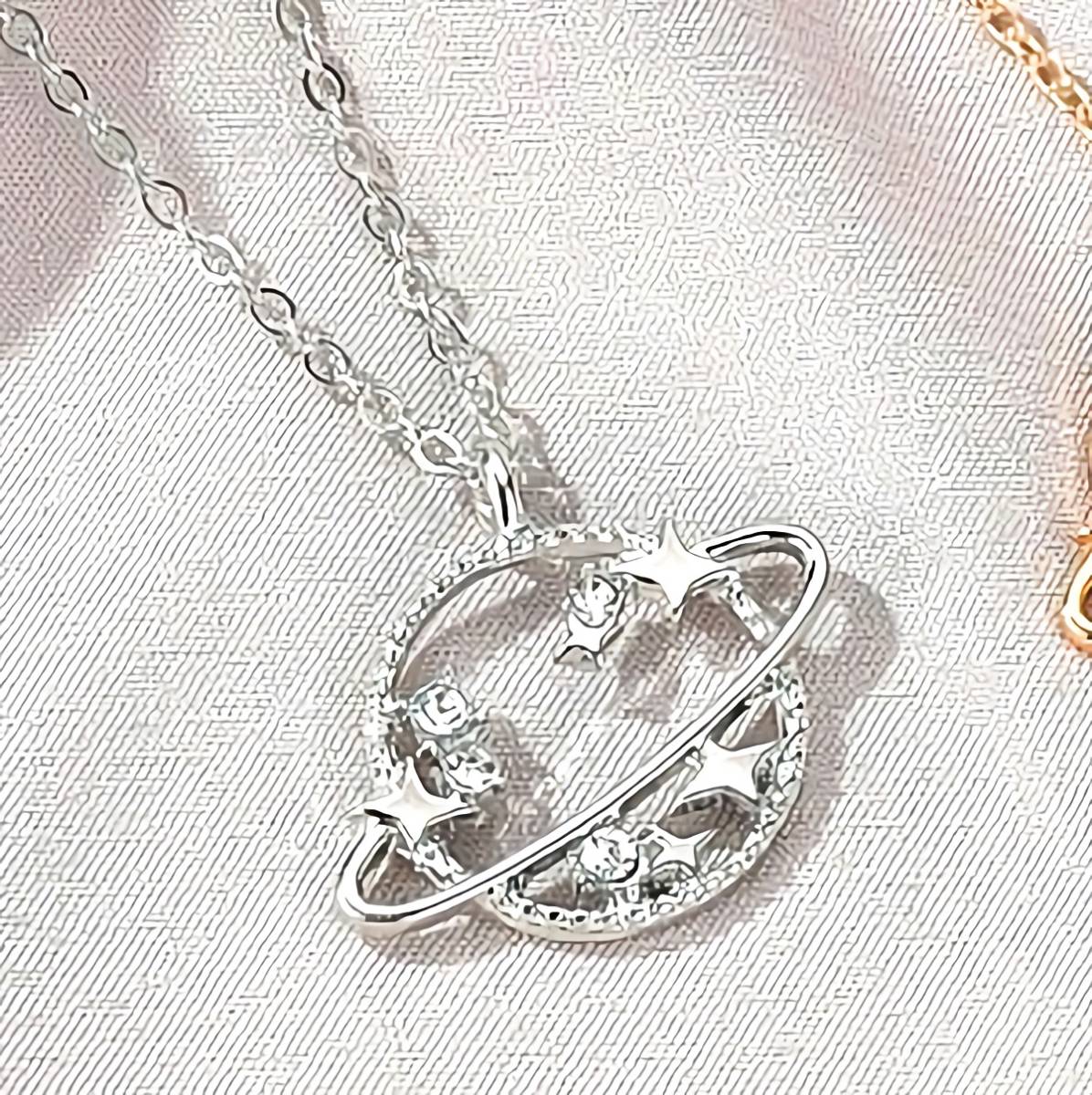 新品★送料無料★銀の土星輪 惑星ダイヤモンド星スタープラチナ仕上925シルバーネックレス 誕生日プレゼント旅行連休春ギフト国内発送