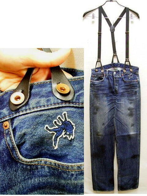 ◇即決[1][W32]ヨウジヤマモト POUR HOMME×MAGIC WASH SPOTTED HORSE CRAFT 11SS ワッペン プールオム サスペンダー デニム パンツ■2325