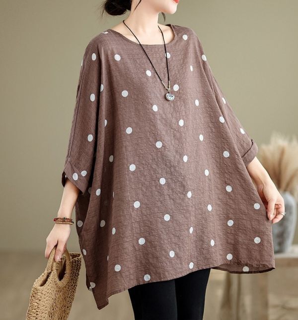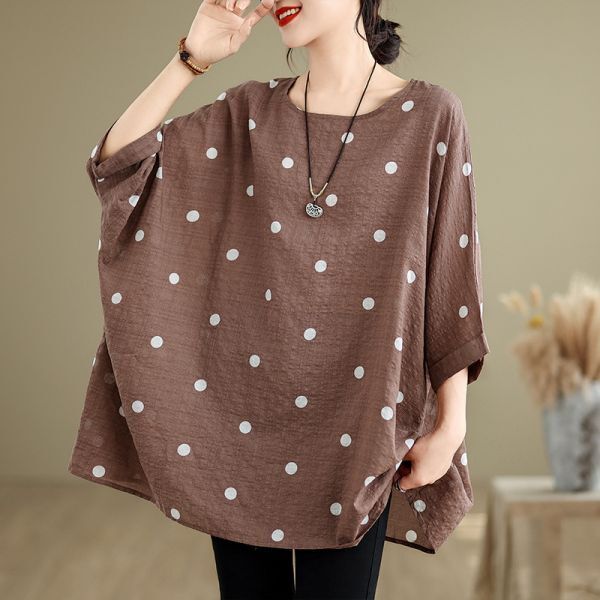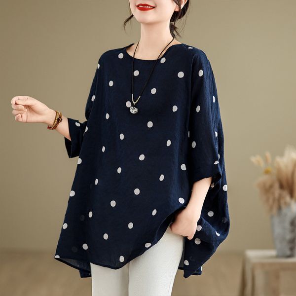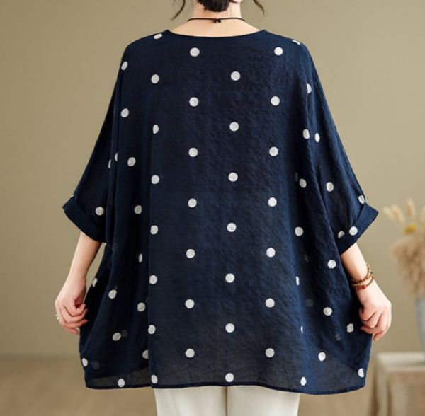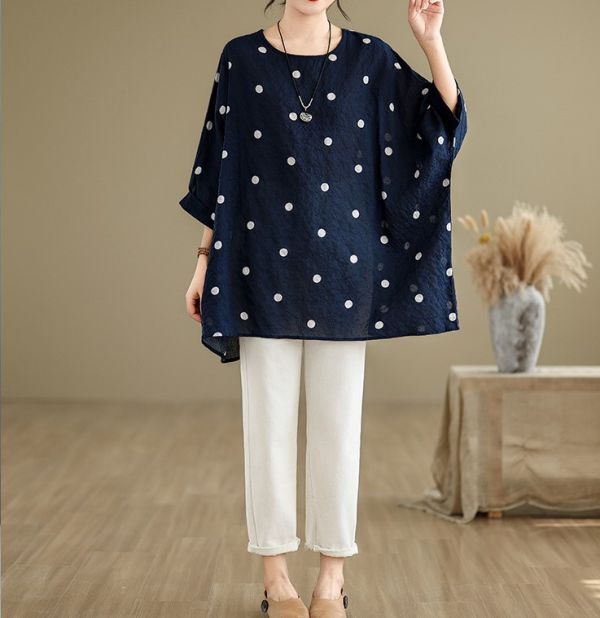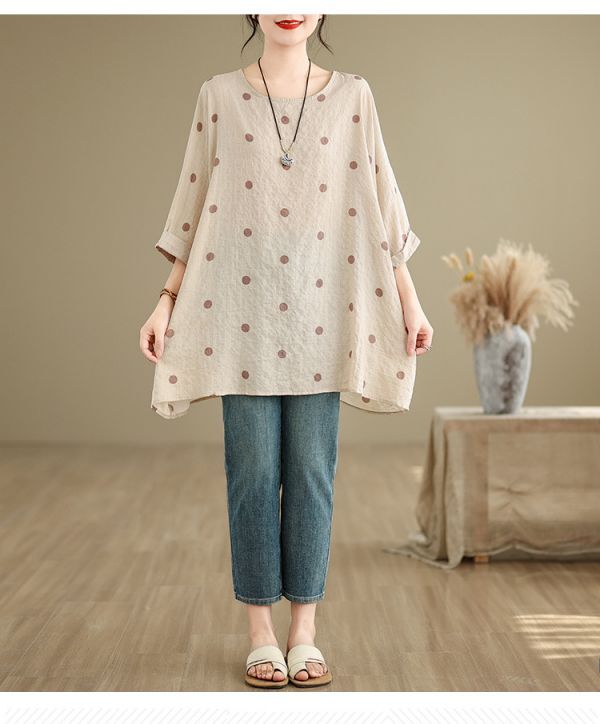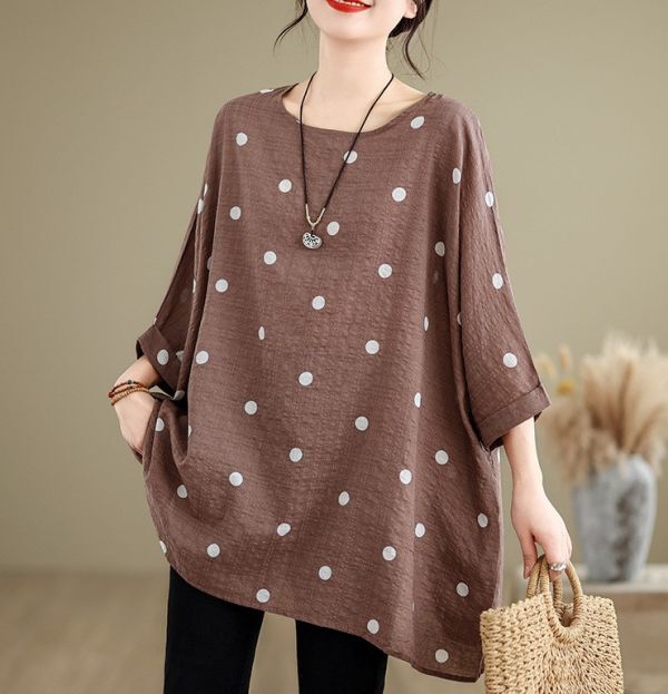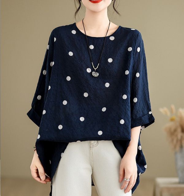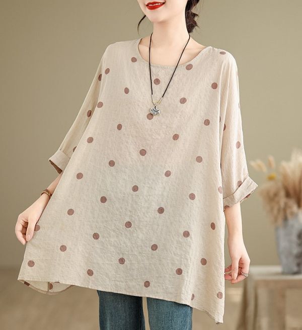 ★★★レディース トップス ブラウス ラウンドネック ドット柄 FX77