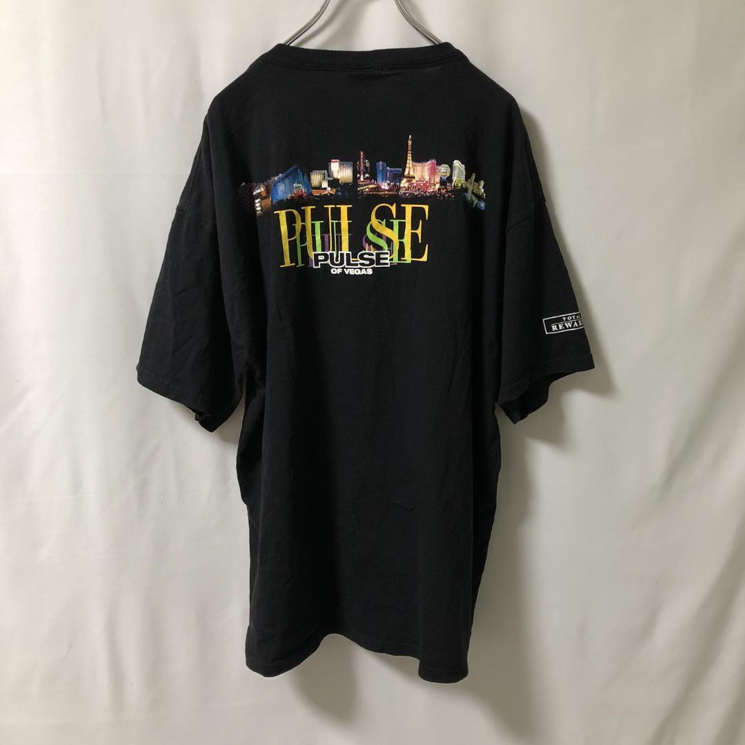 □タイプ:ブラックプリント Tシャツ ミュージックTシャツ 半袖 ビッグシルエット オーバーサイズ 大きいサイズ 米国サイズ ブラック 黒 メンズ PULSE OF VEGAS USA製 00s y2k
