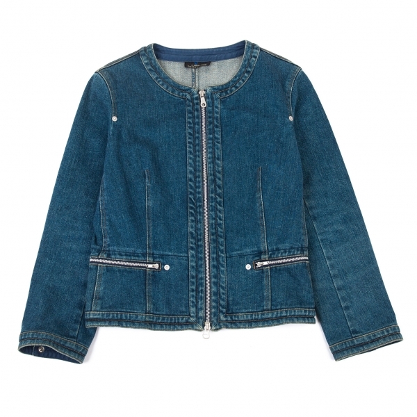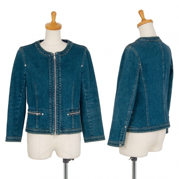 | レキップ ヨシエイナバL'EQUIPE YOSHIE INABA ノーカラージップアップストレッチデニムジャケット インディゴM位 |