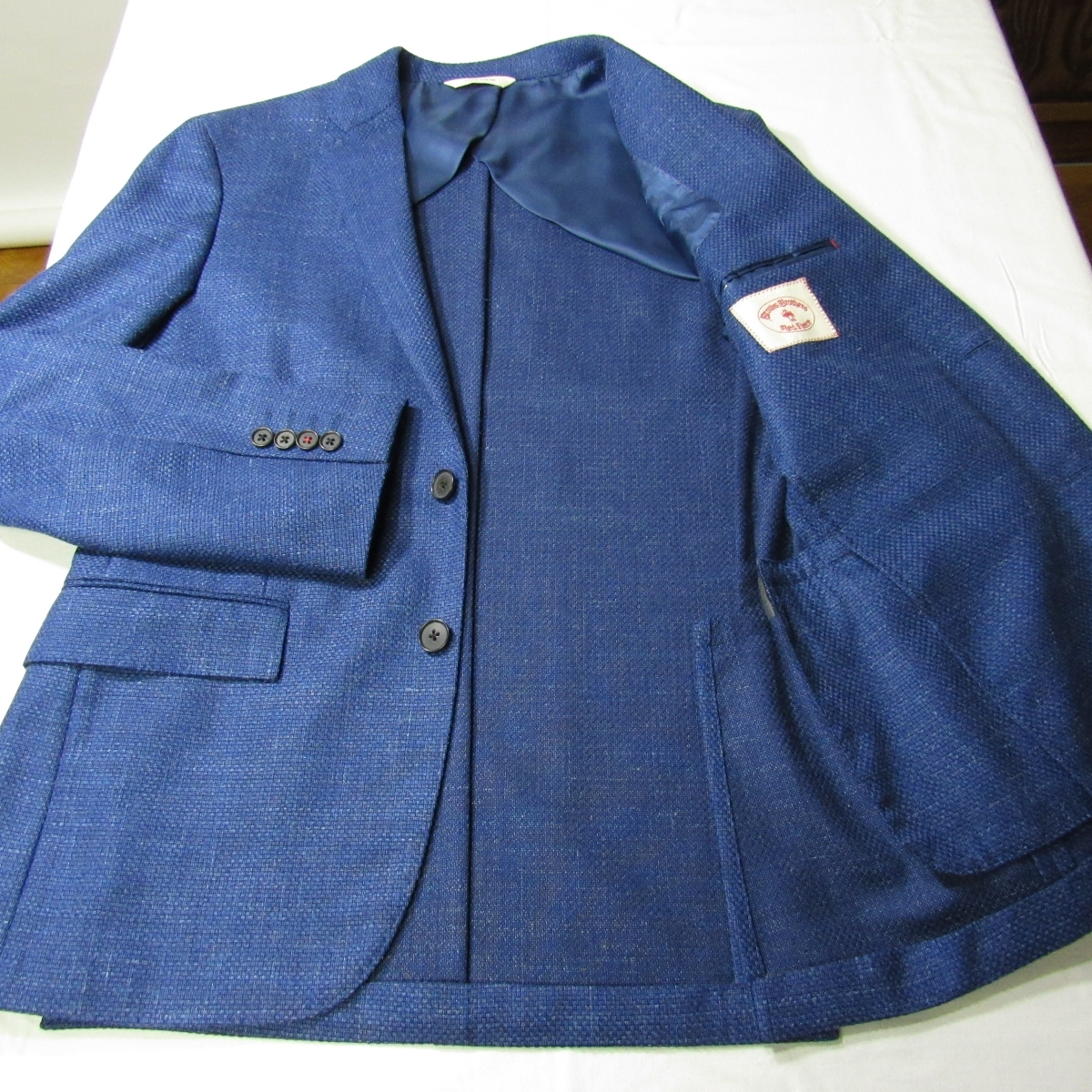 アメリカントラディショナルスタイルの代表ブランド「BROOKS BROTHERS」のカジュアル色が強めのライン「Red Fleece」 生地は、1847年設立の品質の高い梳毛工場として国際的なブランドに取引実績がある、メキシコ国内最大の毛織物工場「SAN ILDEFONSO」の生地を使用しております。 イタリア生地に負けず劣らずの品質として評価されています。 ウール×シルク×リネンの春夏の3者混です。 裏地は背抜き観音仕様で大身返し、肩にはパッドを入れずに芯地のみを使用した軽快な仕立てとなっております。 メンズ・3者混・テーラードジャケット/春夏 シングル2つボタン/サイドベンツ/裏地-背抜き観音仕様/大身返し/肩パッドなしで芯地のみ入り/袖口4つボタン・開き見せ・額縁仕上げ |