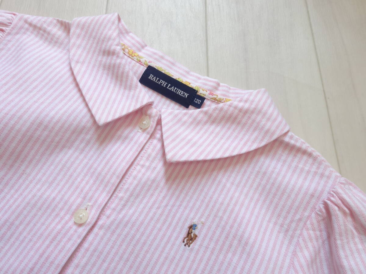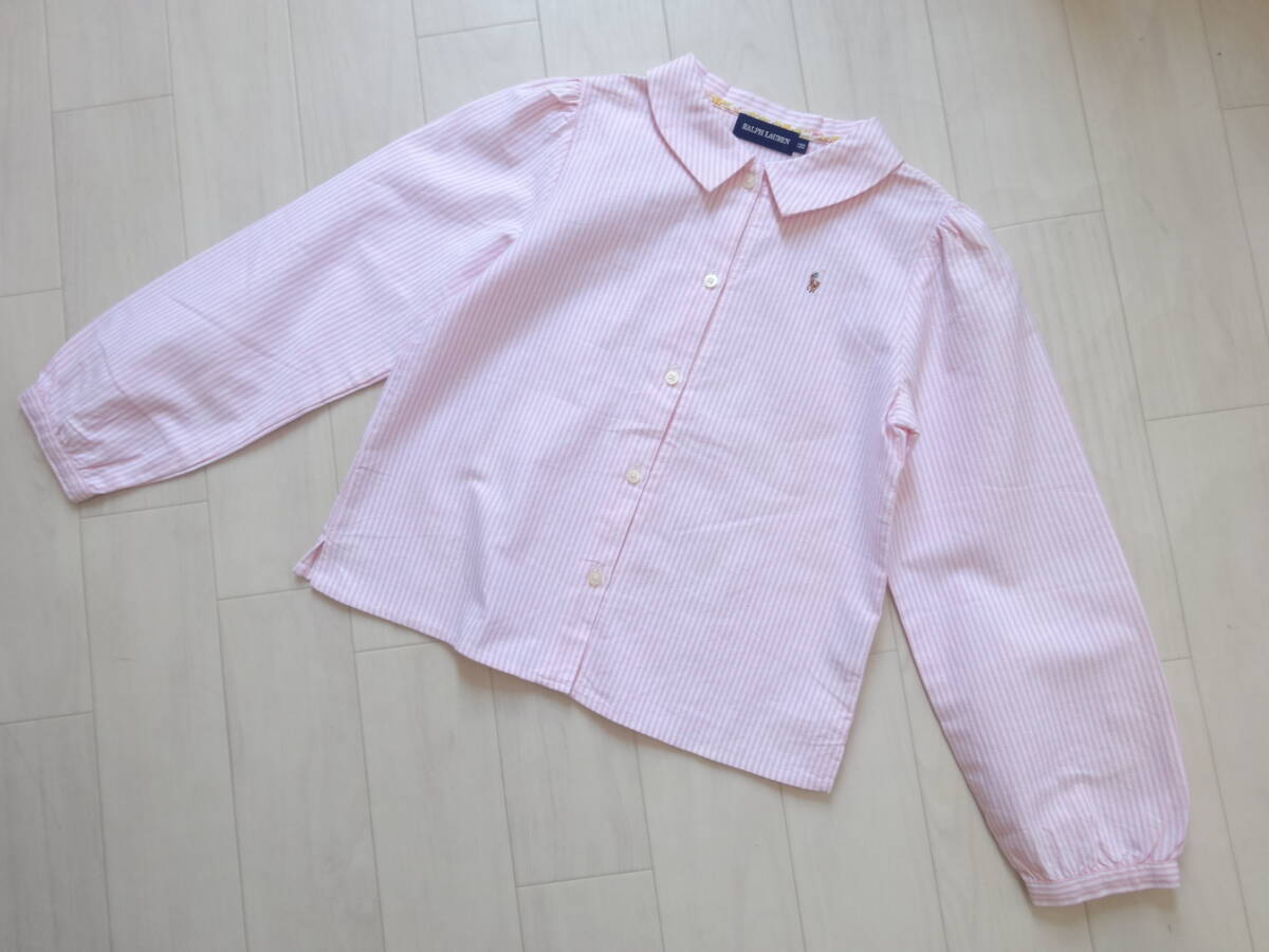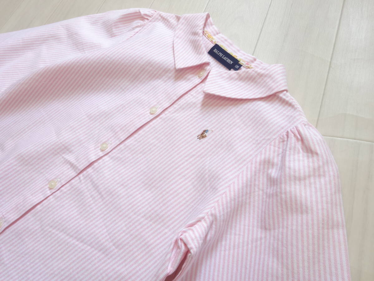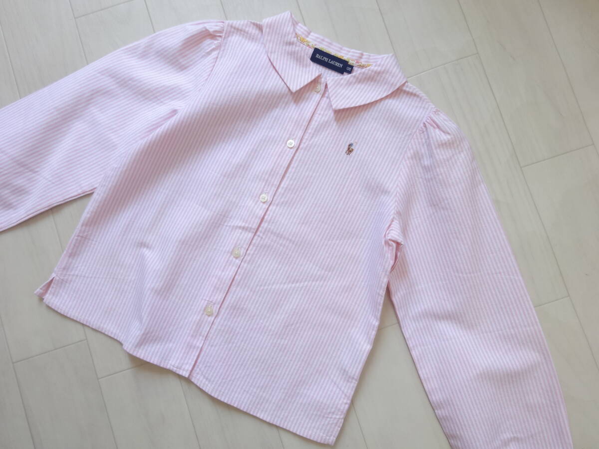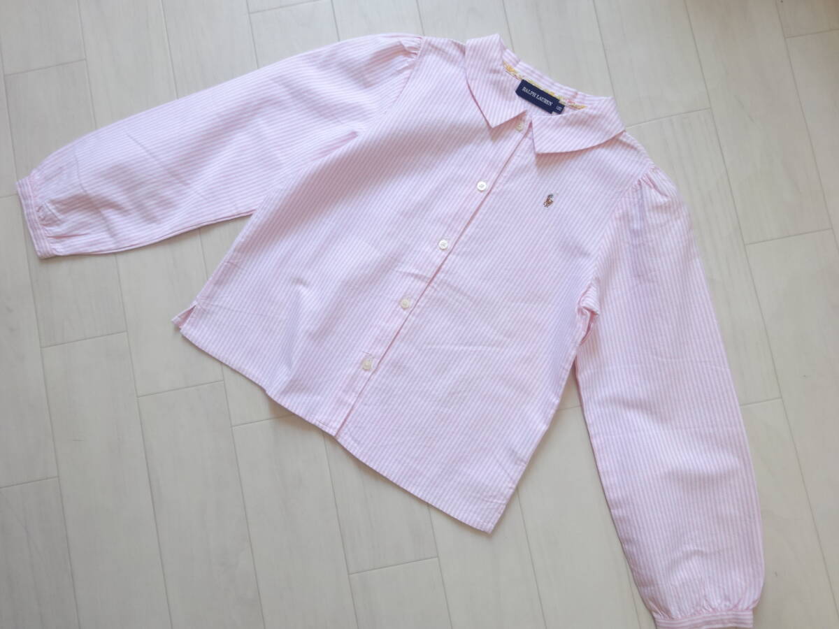 値下げ! 未使用 ラルフローレン ピンクストライプブラウス 長袖シャツ 日本製 120サイズ 送料185円