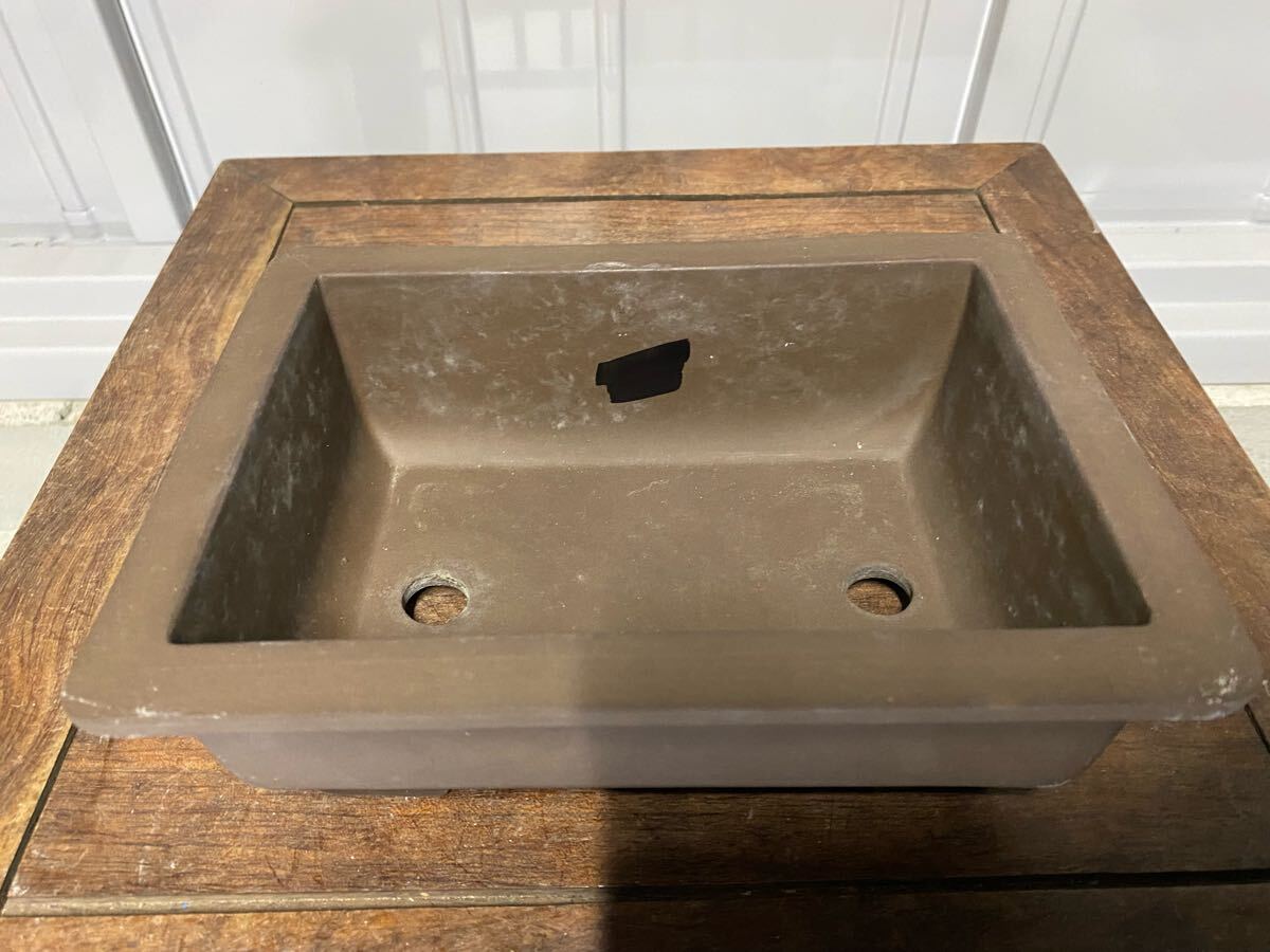 長方で鳥泥の盆栽鉢です。