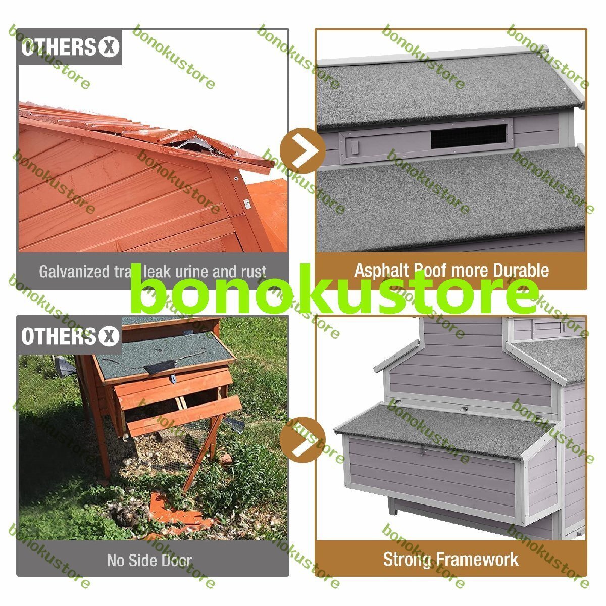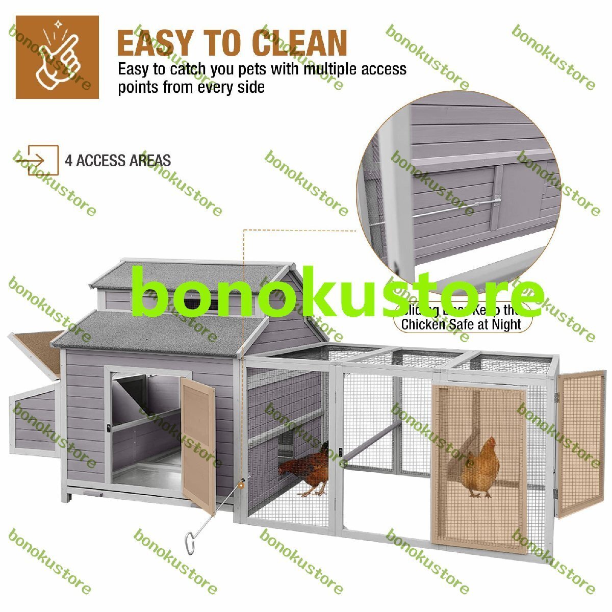 【安全なハウジング】スライドドアのスチールポールは、ヘネやアヒルを小屋に安全に固定します。 各アクセスポイントの一連のロックがペットの安全を確保します。
