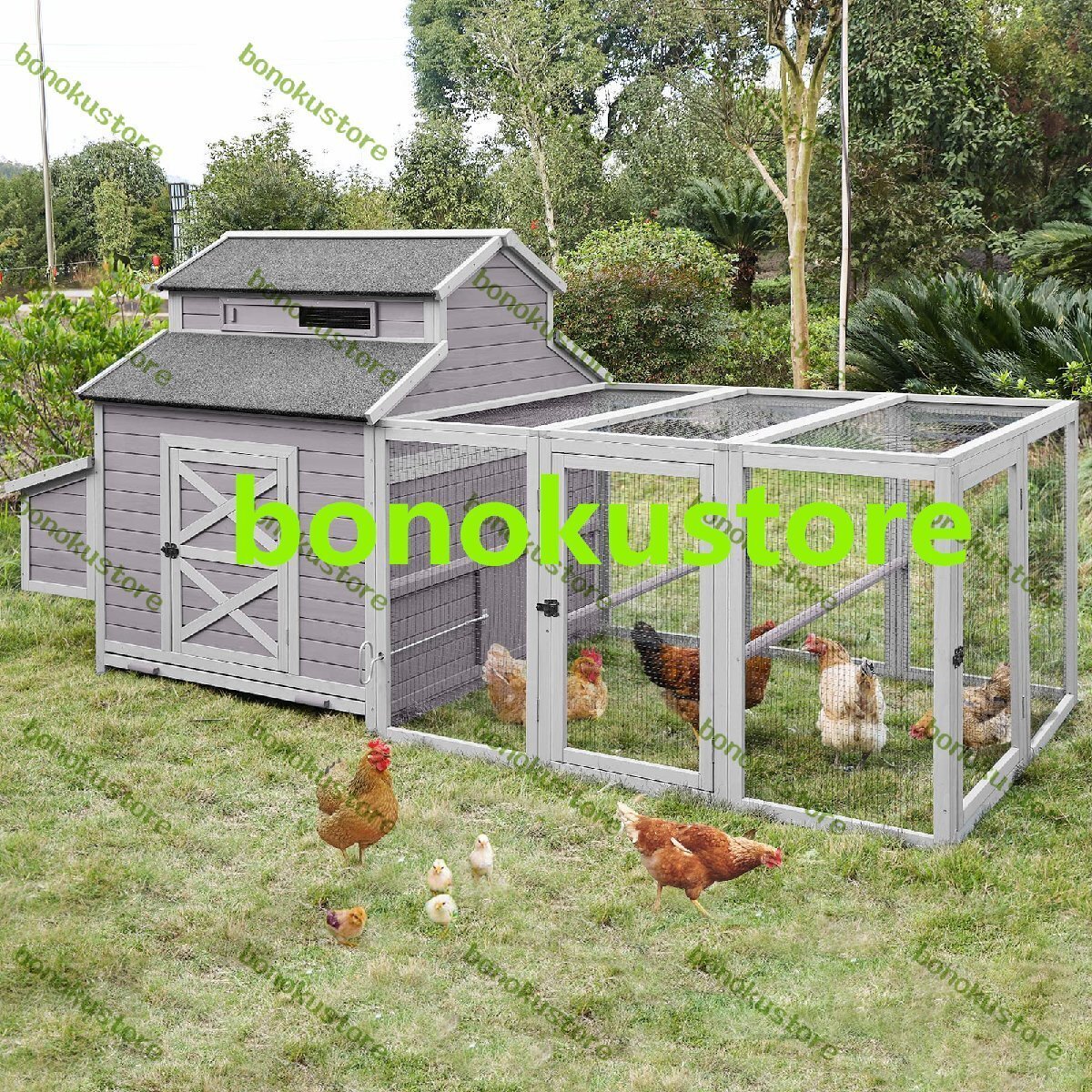 鶏小屋 大型鶏小屋 8-10鶏用 木製鶏肉 ケージ ランとネスティングボックス付き 115インチ