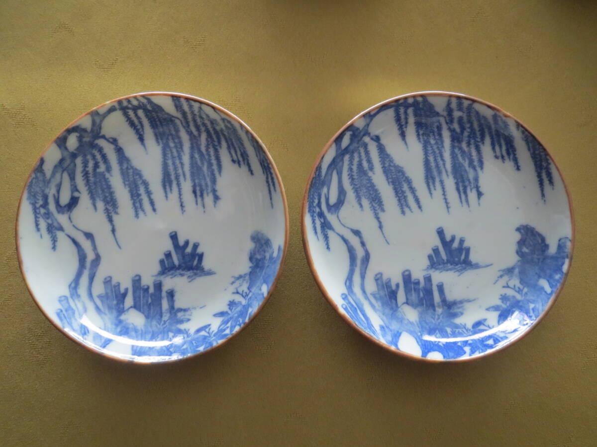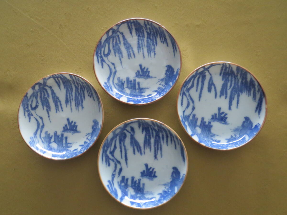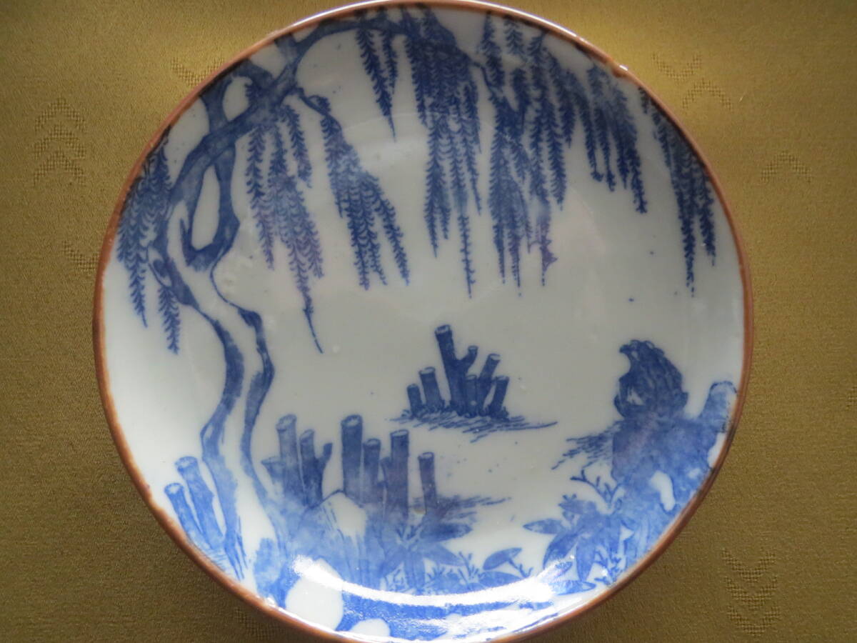 印版 小皿 4枚 水辺 柳に蛙 図  かえる