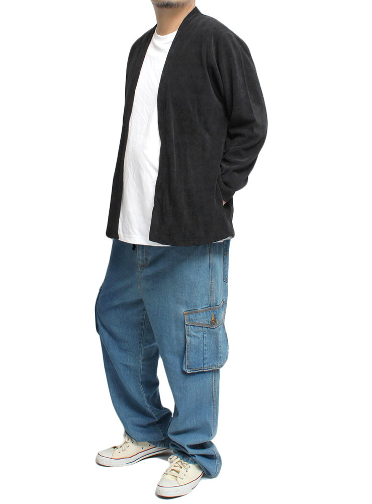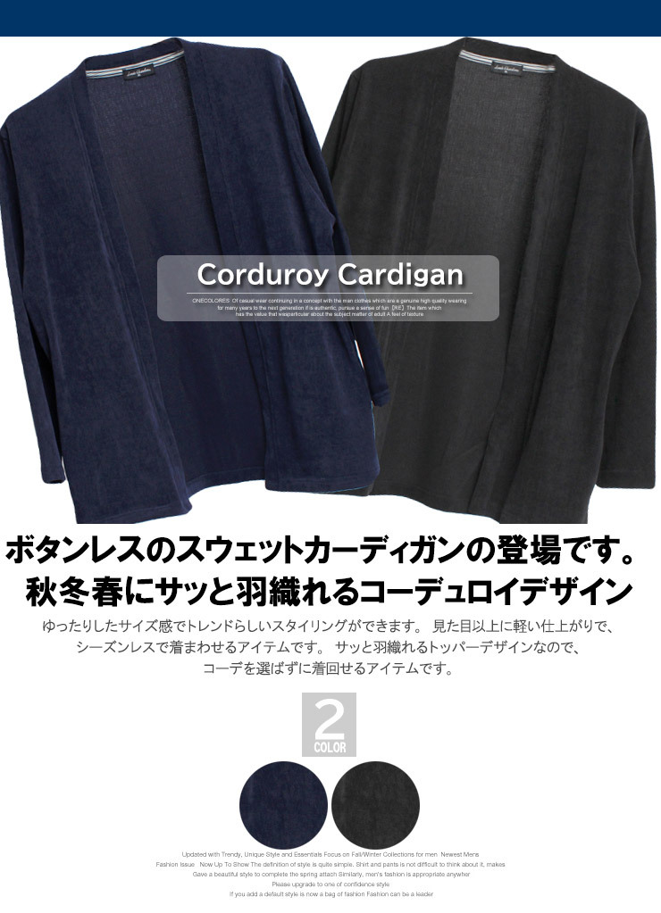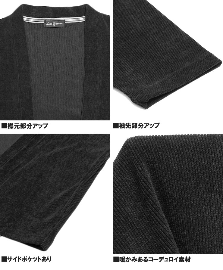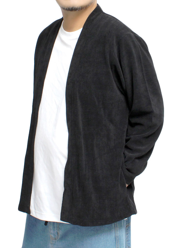 商品名 | 【新品】 4L ブラック カーディガン メンズ 大きいサイズ カット コーデュロイ ボタンレス トッパーカーディガン |