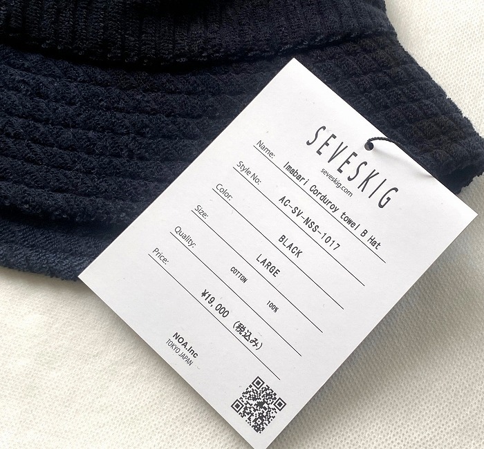 「SEVESKIG (セヴシグ) 」の Imabari Corduroy towel B Hat イマバリ コーデュロイ タオル ハット AC-SV-NSS-1017 LOGO ロゴ 刺繍 EMB Bucket バケットハット CAP キャップ BLACK L MADE IN JAPAN おしゃれ ストリート 帽子 セブシグ COTTON コラボ 今治 愛媛 です。