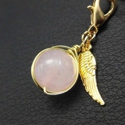 ワイヤーラッピング瑪瑙×羽根のお洒落なストラップ 703