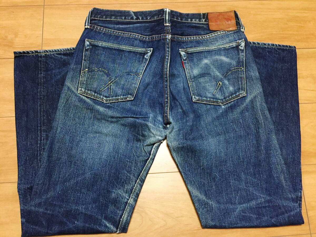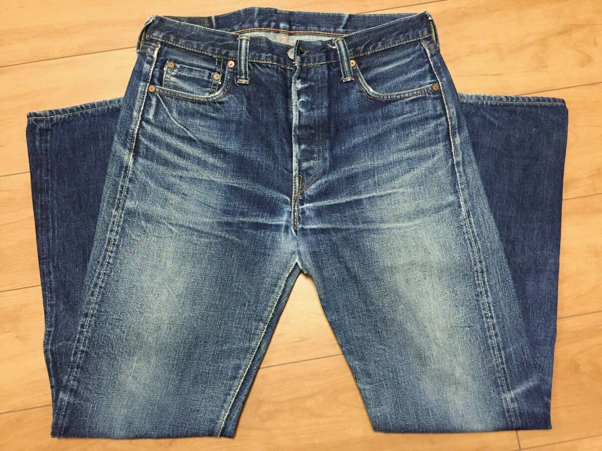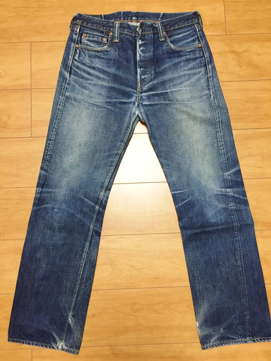 ・写真のとおり、激色落ち。サイドのアタリ、ヒゲ、縦落ち完璧。新品からガンガンに履き込まれています。さすがフルカウント。ビンテージの501XXにそっくり、サンプル級色落ちに仕上がってます
