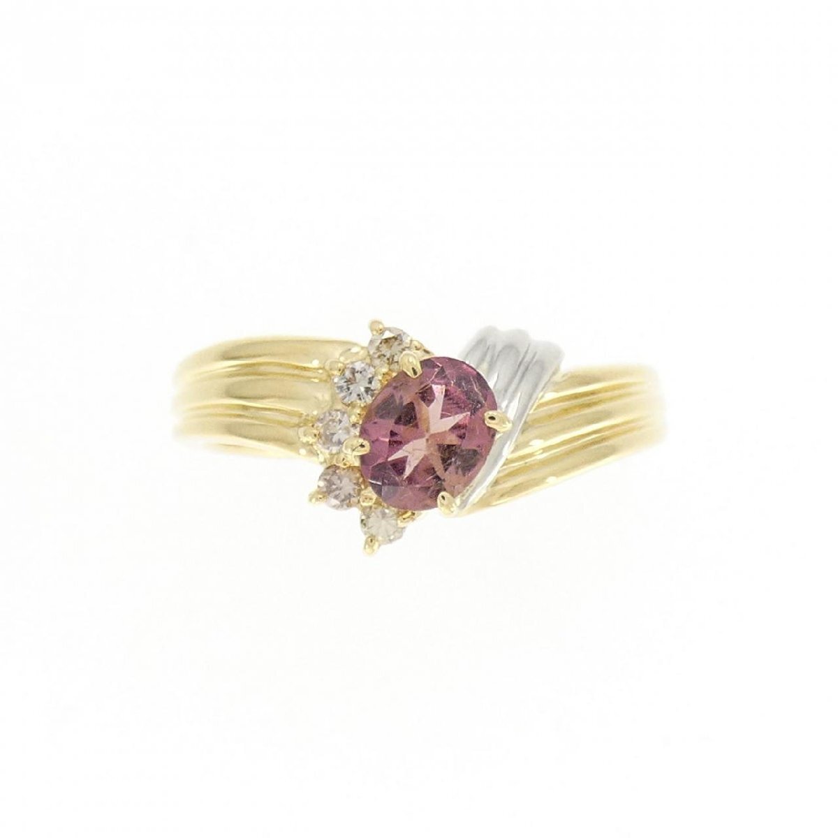 落ち着いたピンクカラーのトルマリンが煌めくリング。指元を可憐に飾ります。