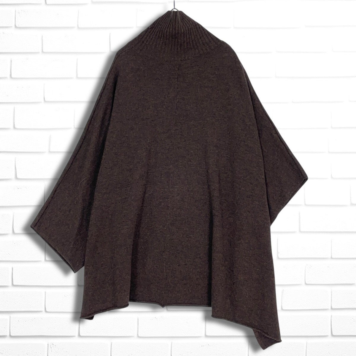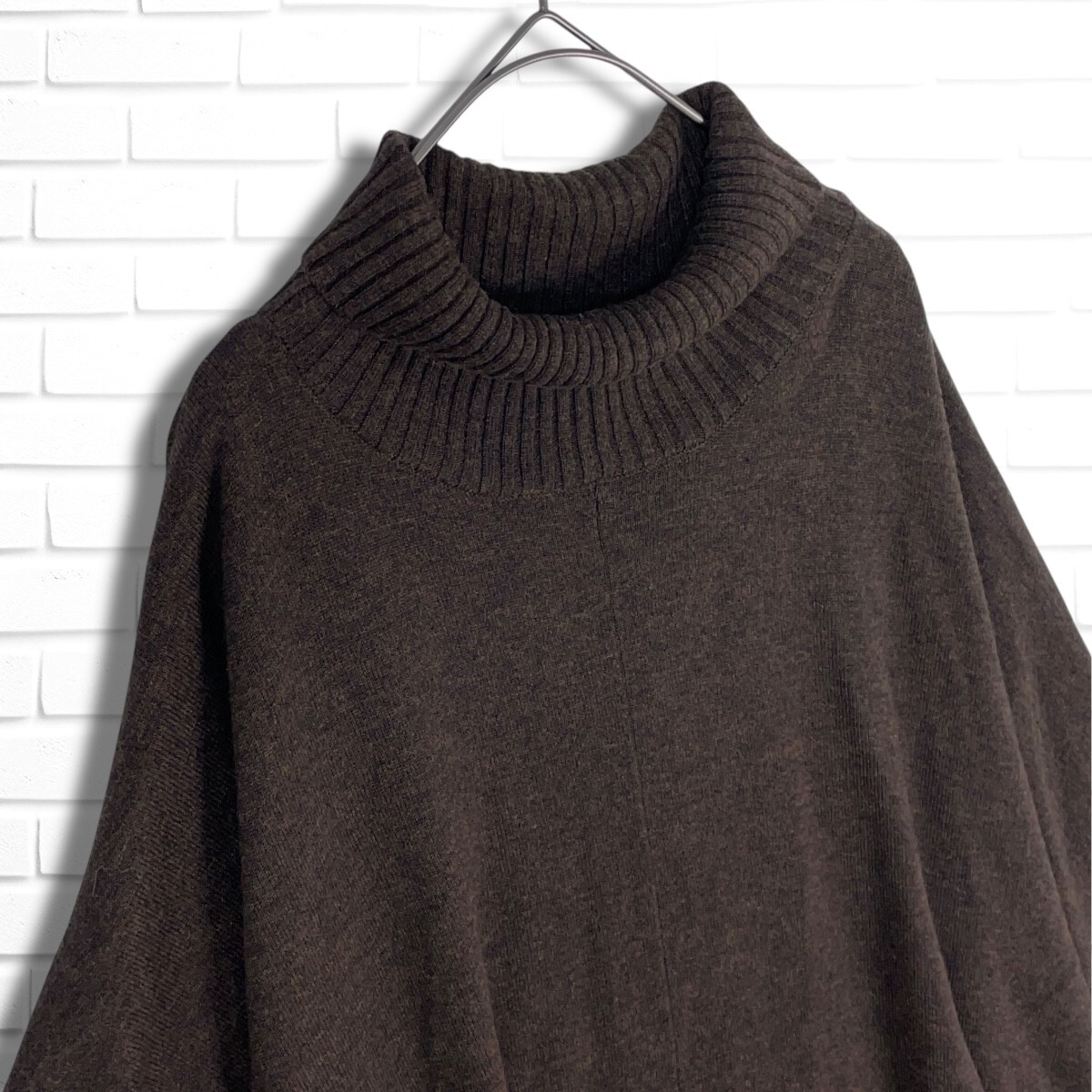 ◆美品◆ mizuiro ind ミズイロインド ゆったり♪ アシンメトリー ウール ニット セーター チュニック 茶 ブラウン レディース F 3355D◇