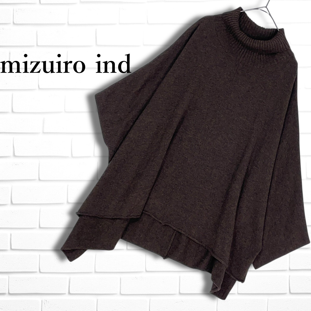 ◆美品◆ mizuiro ind ミズイロインド ゆったり♪ アシンメトリー ウール ニット セーター チュニック 茶 ブラウン レディース F ◆送料無料◆ 3355D◇