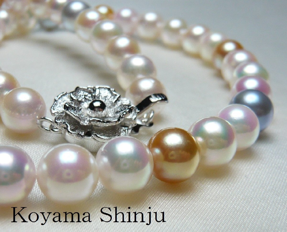 | 真珠の色 | マルチ ホワイト、ピンク、ホワイトグリーンピンク、クリーム、ゴールド、グレー、ブルーなど(染色) | ||