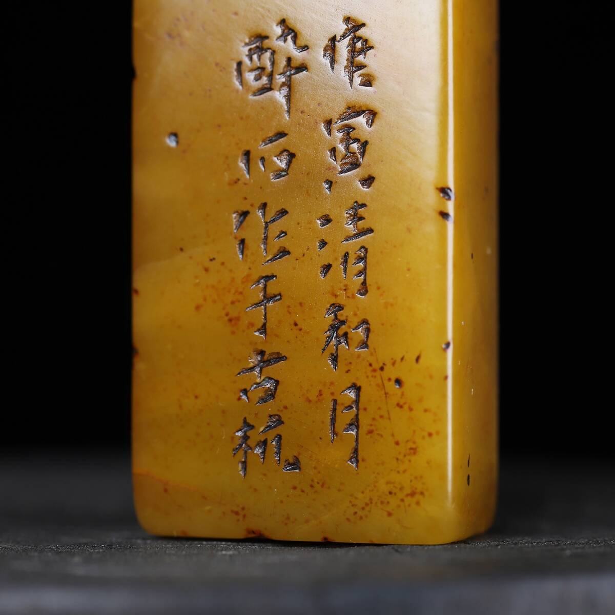 *珍品旧蔵* 【中國現代篆刻家 唐醉石】寿山 原石 印鑑の方 天然石 手彫 篆刻 極細工 骨董品 置物 唐物 古美術品 中国古玩 古美味 H45