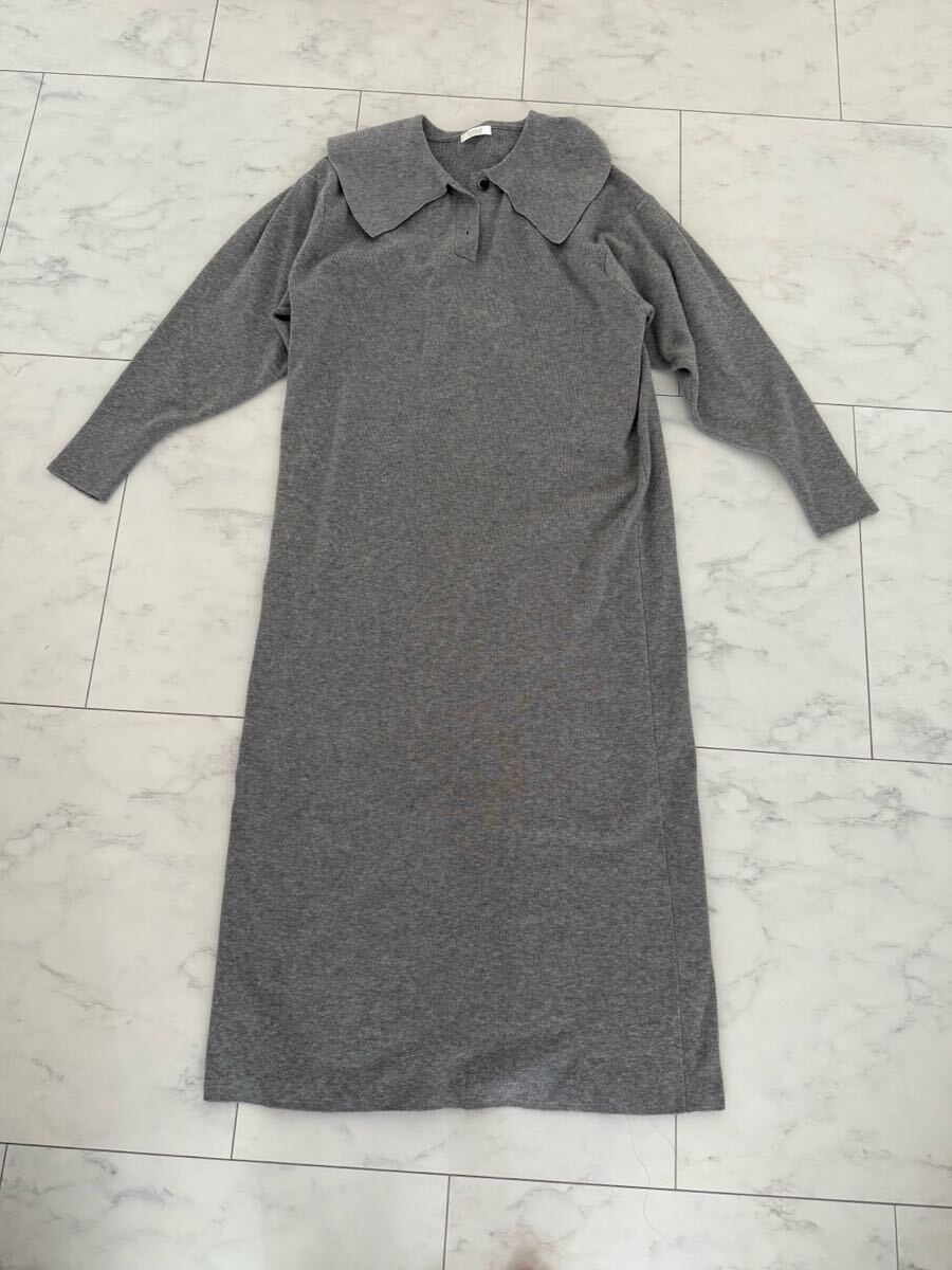 このロングワンピースは、シンプルでありながらも存在感のあるデザインが特徴です。大きな襟が印象的で、カジュアルにもフォーマルにも着こなせるアイテムです。