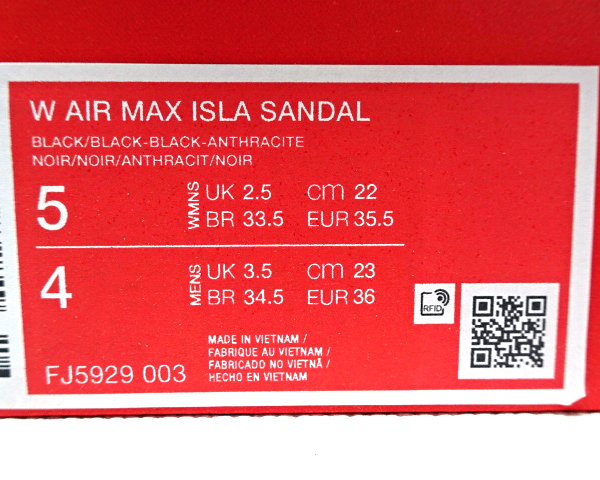 5 (22cm) 新品【NIKE W AIR MAX ISLA SANDAL FJ5929-003 BLACK/BLACK ナイキ ウィメンズ エア マックス アイラ サンダル 国内正規品】