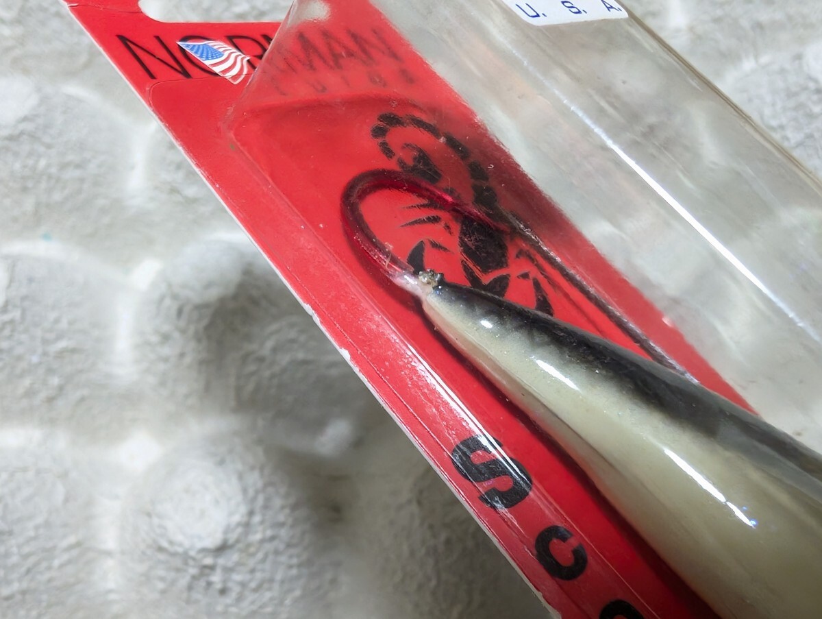 ベリーにトレブルフック、テールにウィードガード付きのレッドシングルフックを搭載。