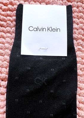 【新品・タグ付】Calvin Kleinカルバンクライン 黒色地にドット柄・クルー丈メンズソックス 25~27㎝