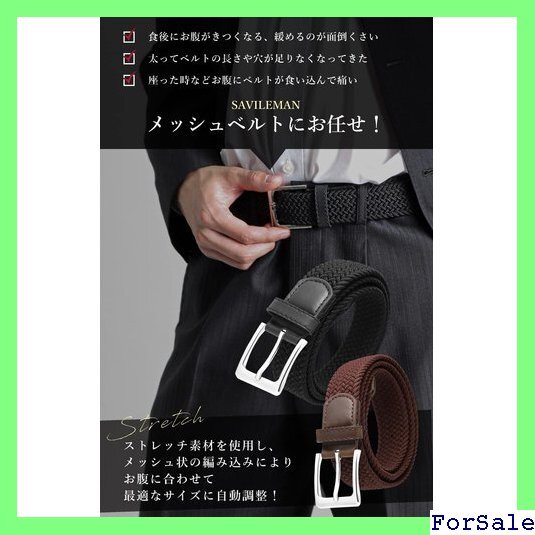 サヴィルマン ベルト メンズ メッシュベルト フリーサイズ 編み込み 伸縮ベルト ゴム 伸びる カジュアル ビジネス 紳士 レザー 73