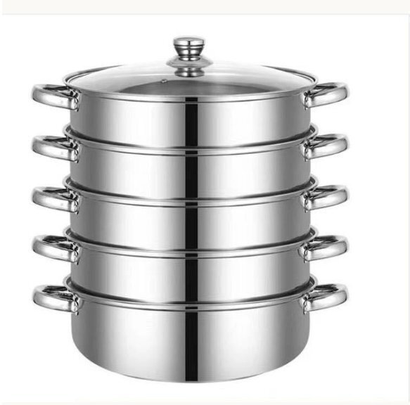 蒸鍋34cm「5層」対応熱源:IH対応 各種熱源対応 ガラス鍋蓋付 中華 肉まん 蒸し器
