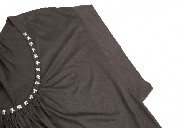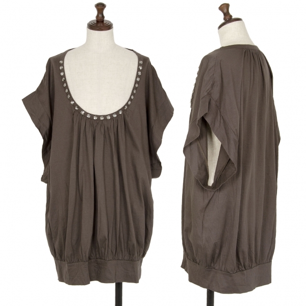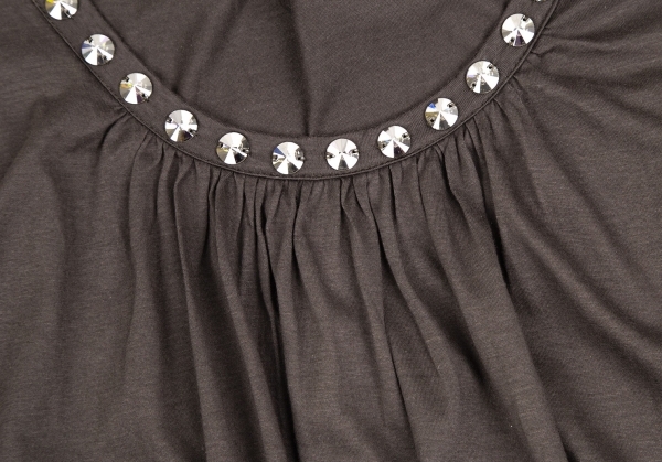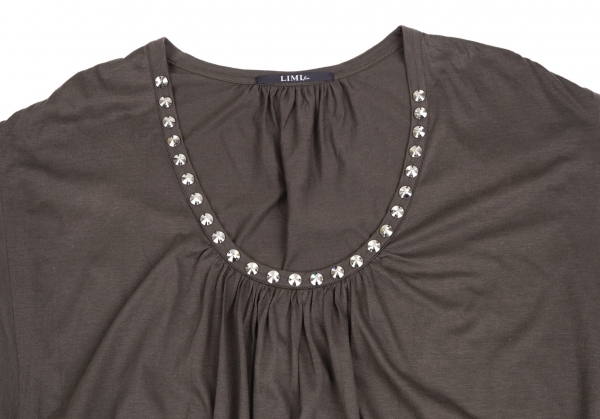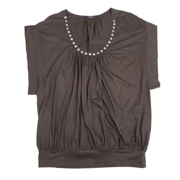 | リミフゥLIMI feu ビジュー装飾ギャザーデザインドレープトップス 茶S |