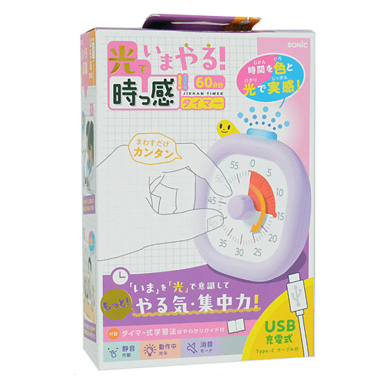 | SONIC(ソニック) 光でいまやる!時っ感タイマー USB充電式 色と光で時間を実感 10cm LV-7826-V バイオレット | |