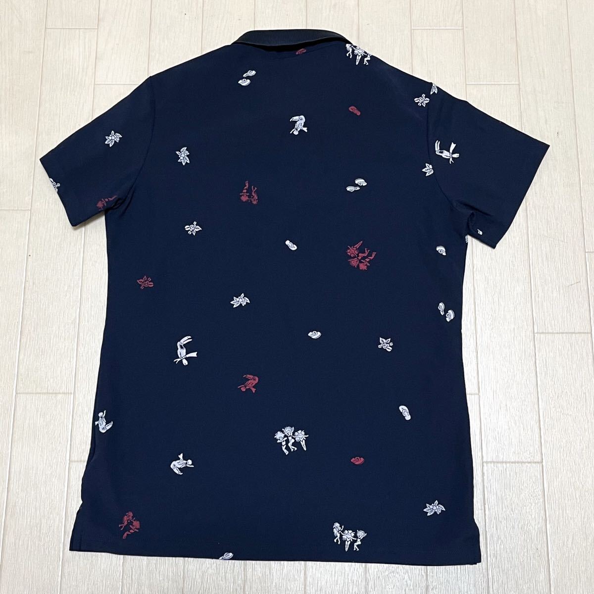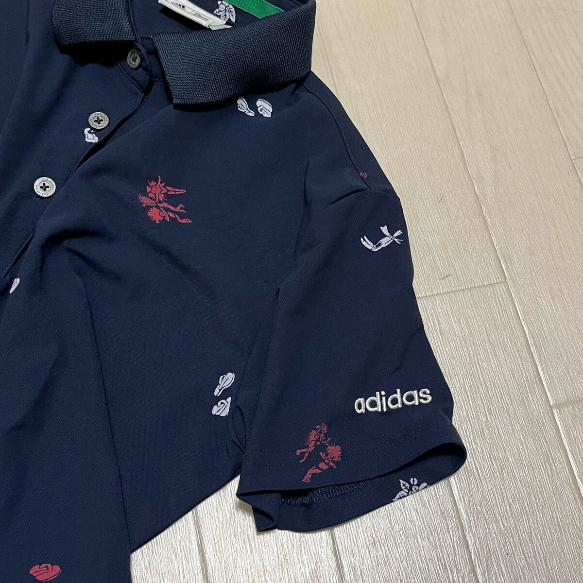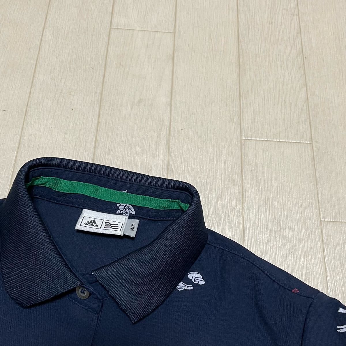 和729★ adidas GOLF アディダス ゴルフ 半袖 ポロシャツ 総柄 M ネイビー レディース