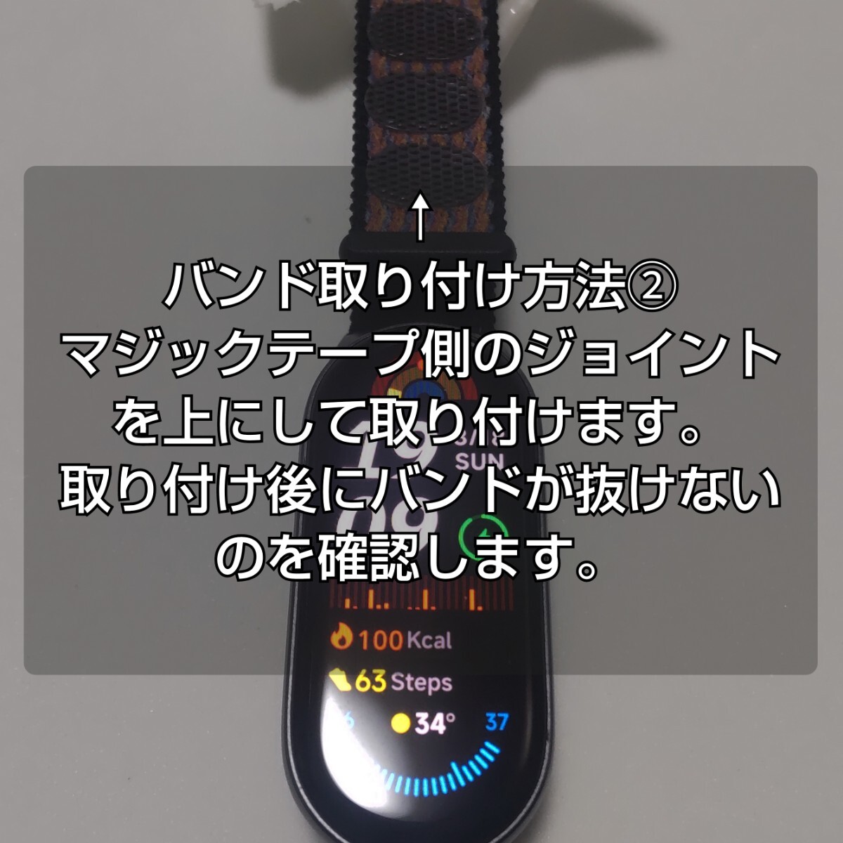 必ずバンドを取り付け後に、バンドが抜けないのを確認してください。