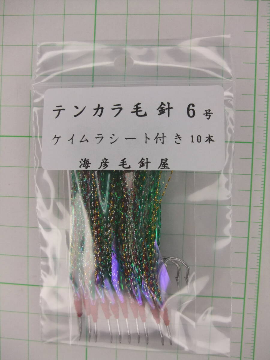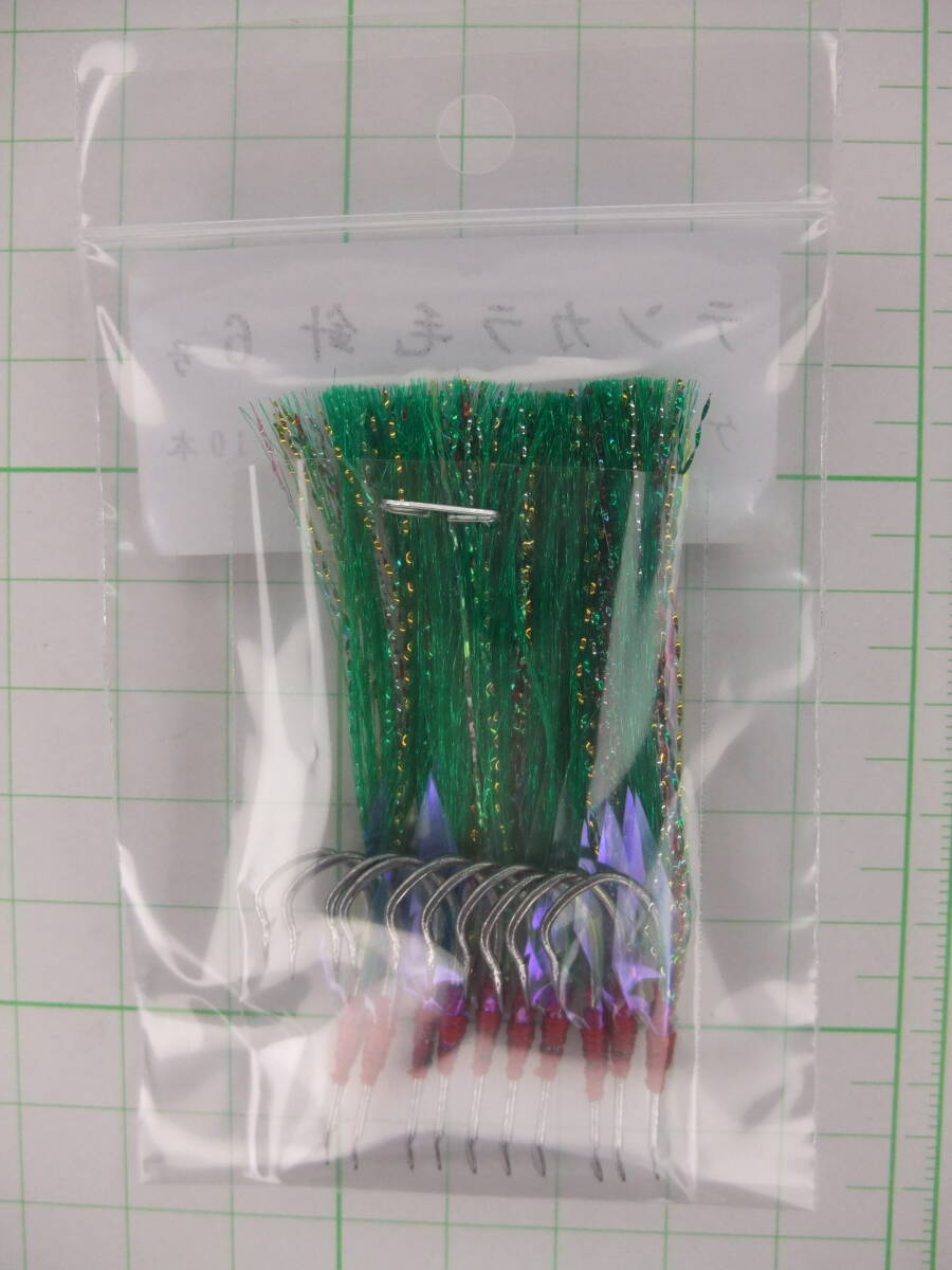 6MK テンカラ6号毛針 イソ縄毛針 オキメバル 緑フラッシャー ケイムラシート付き 10本セット