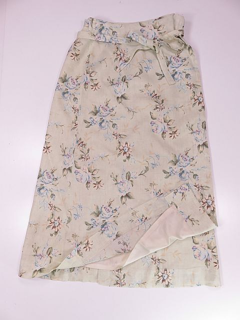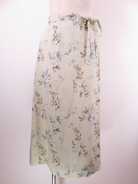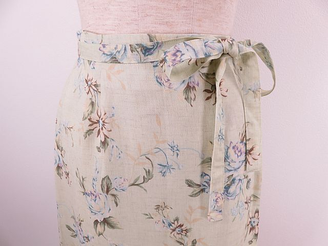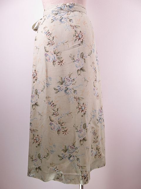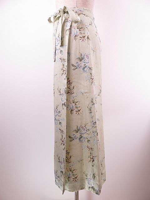 【送料無料】美品 アリスバーリー Aylesbury 巻きロングスカート 麻配合 黄緑色 9/M