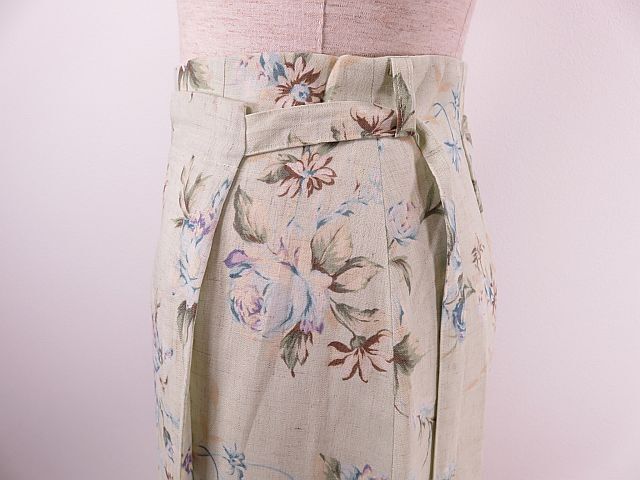 美品 アリスバーリー Aylesbury 巻きロングスカート 麻配合 黄緑色 9/M