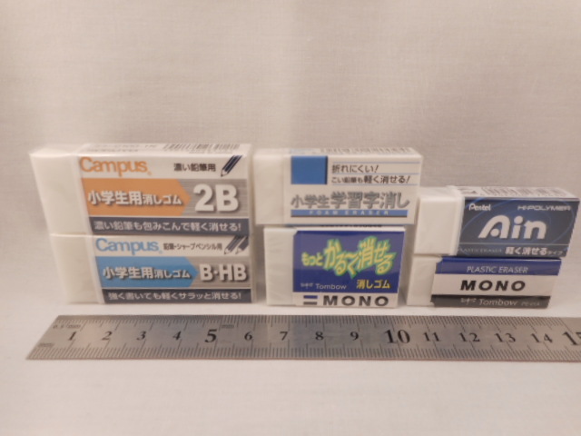各種消しゴムの大きさは、画像順に記載通りとなります (外寸)