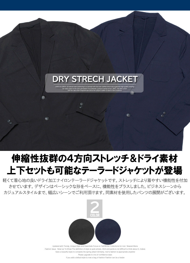 | 商品説明 | 軽くて着心地の良いドライ加工テーラードジャケットです。 |