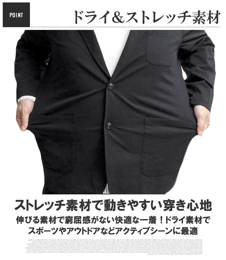 | 商品名 | 【新品】 2L ブラック テーラードジャケット メンズ 大きいサイズ ドライ ストレッチ 薄手 2B ジャケット |