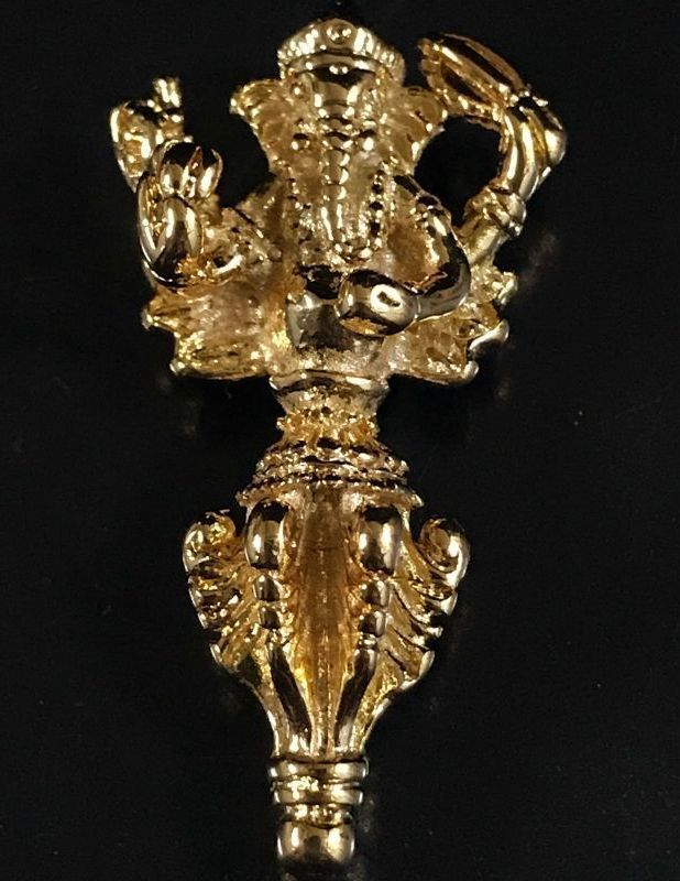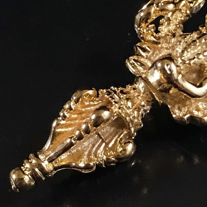 ![]() ![]() 豆法具◆ガネーシャ・バジュラ(ゴールド)◆ 上部は、ヒンズー教のシバ神の子供で人気のある神様、象頭神のガネーシャです。 ガネーシャは、「障害の除去」、「富と繁栄」、「智恵と学問」などの利益をもたらしてくれると言われ、仏教では歓喜天として知られています。 また、商売の神様とされ、日本では夫婦円満の神ともされています。 下部は、古来より魔を祓い煩悩を砕くといわれているバジュラ。迷いを打ち破る仏の智慧を象徴します。 もっとも堅固であり、あらゆるものを打ち砕くとされます。 仏敵を倒すため・自己の煩悩を破壊するための密教法具です。 商品説明★小さいサイズのチベット密教仏具です。 小さいですが穴通しがついておりますので、紐を通してペンダントとして、 金具をつけてストラップとしてもご利用いただけます。 小さいですが、細かな細工が見事な仏具です。 お部屋、お車に、仕事のデスクに、 その他さまざまな場所に、お守りとしていかがですか? ★サイズ:全長約3.2cm、最大幅1.6cm、重さ5g ★真鍮製(カラー:ゴールド) ★チベット製・新品未使用 ★仏様の持ち物であり、これ以上のお守りはありません。おすすめです!! 他にもいろいろな密教仏具を出品してますので、よかったらご覧ください☆ ![]() |