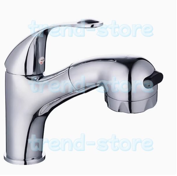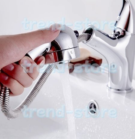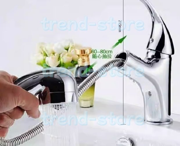 主な材質:黄銅 表面処理:クロムメッキ 「キッチンや洗面用にとても使い勝手の良い、伸縮シャワーノズルタイプのシングルレバー混合水栓です」  引き出せるシャワーホース内蔵だから、キッチンのシンクや洗面ボウル回りで大活躍! 広いシンクや洗面ボウルもラクラク洗えます!