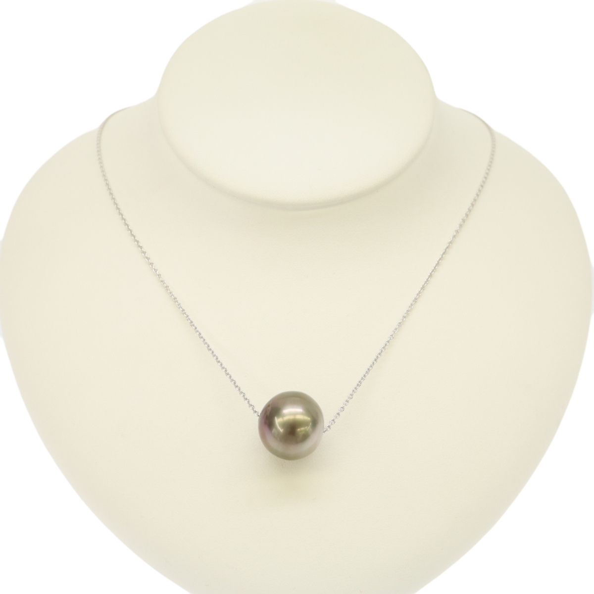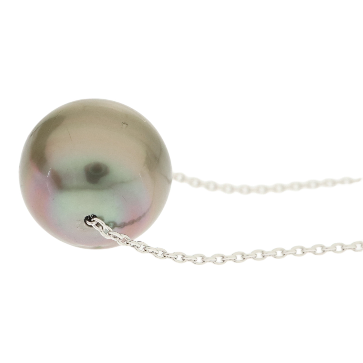 | タヒチパール1Pのネックレスになります。シンプルなパールのアクセサリーをお探しの方におすすめです。Aランク。パールに自然なえくぼがございますが、使用感のない綺麗なお品になります。 | |
