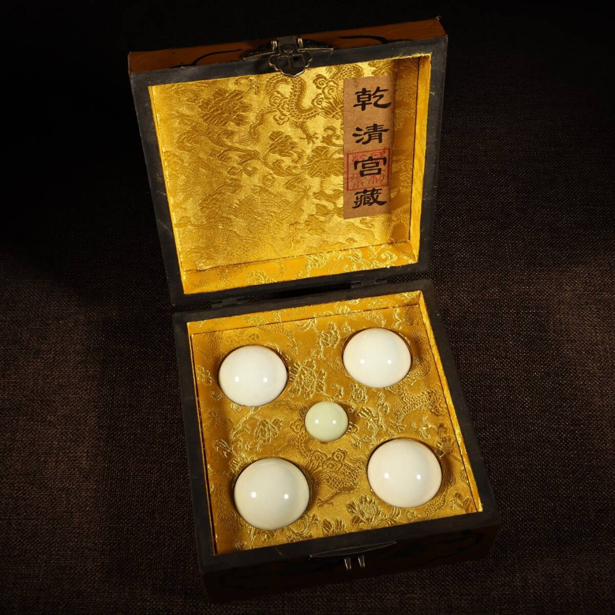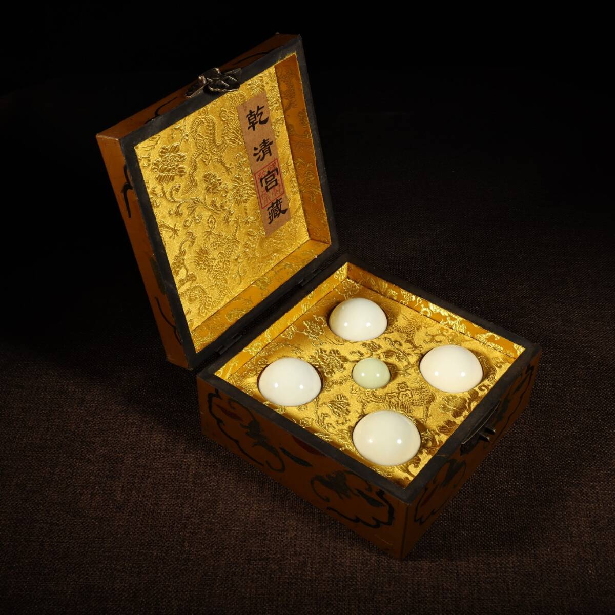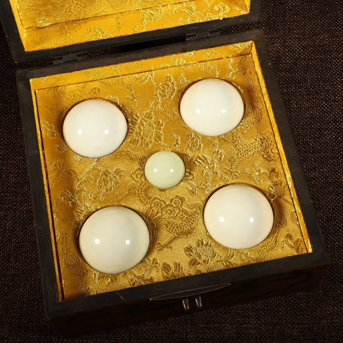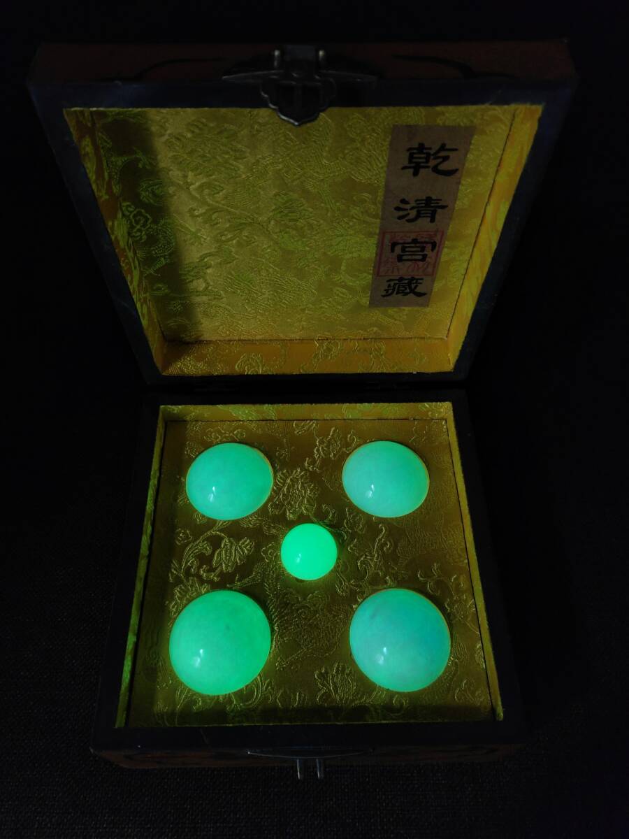 蔵友館蔵品 夜明珠 夜光石 原石球 手把件 5个 手球 箱有 宮廷供奉品 極細工 古賞物 東洋彫刻 中国唐物 時代物 骨董 中国古美術