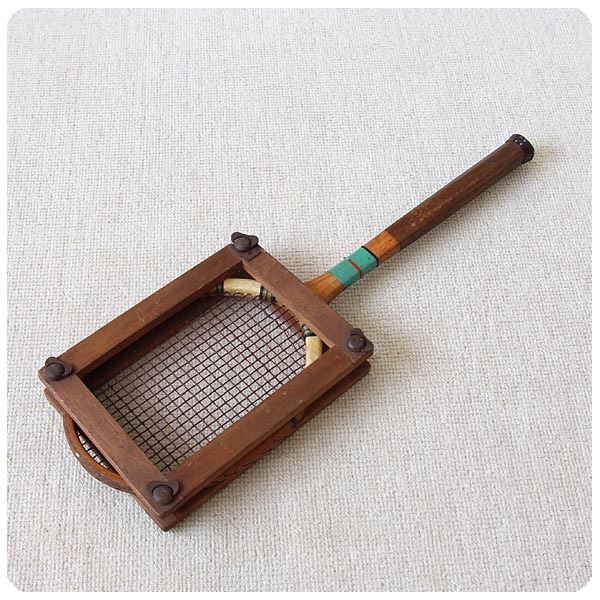 使い込まれた風合いがとっても素敵なテニスラケットはいかがですか?店舗インテリアにもどうぞ 。