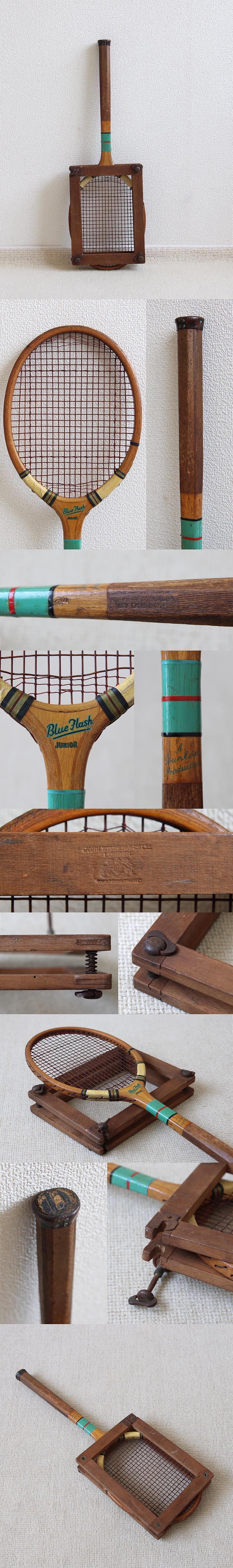 イギリス アンティーク 木製テニスラケット ラケットプレス付き インテリア 雑貨 店舗什器 K-406