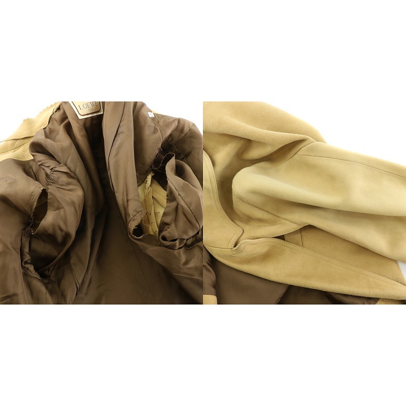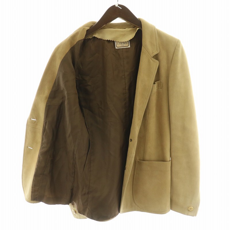 ロエベ LOEWE ヴィンテージ テーラード ジャケット スエード レザー 40 L ベージュ /MW ■GY18 レディース