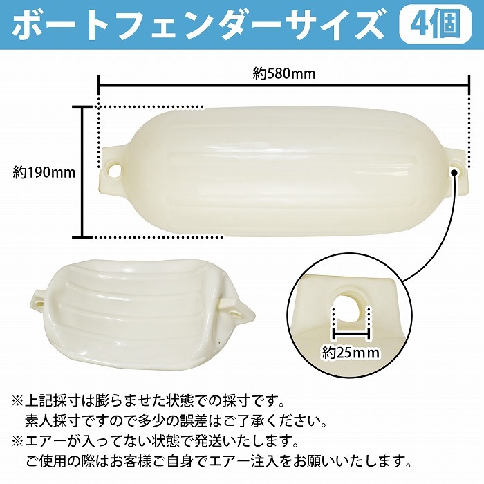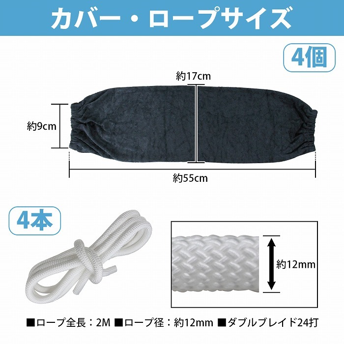数量:フェンダー×4本、カバー×4枚、ロープ×4本