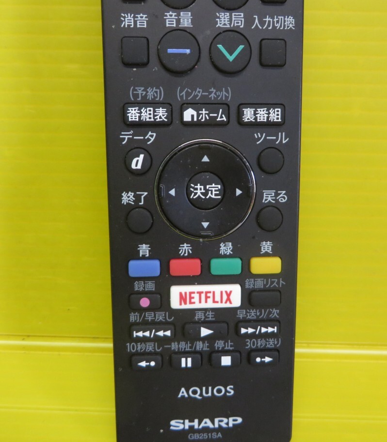 S-92★美品!SHARP シャープ テレビリモコン GB251SA ★ 動作品 保証付