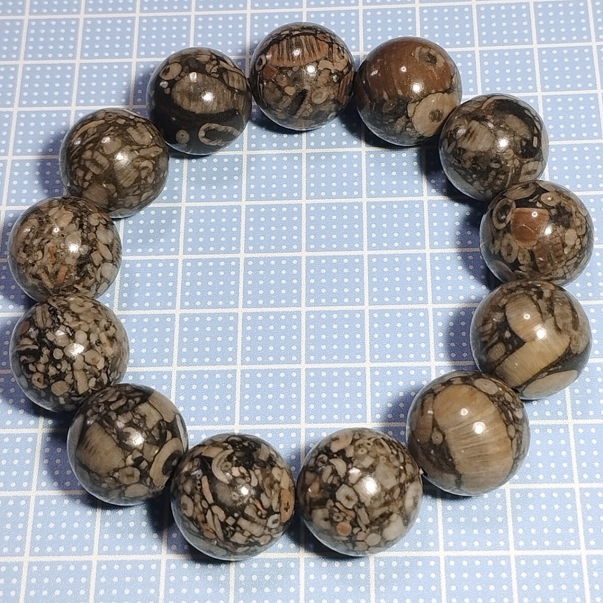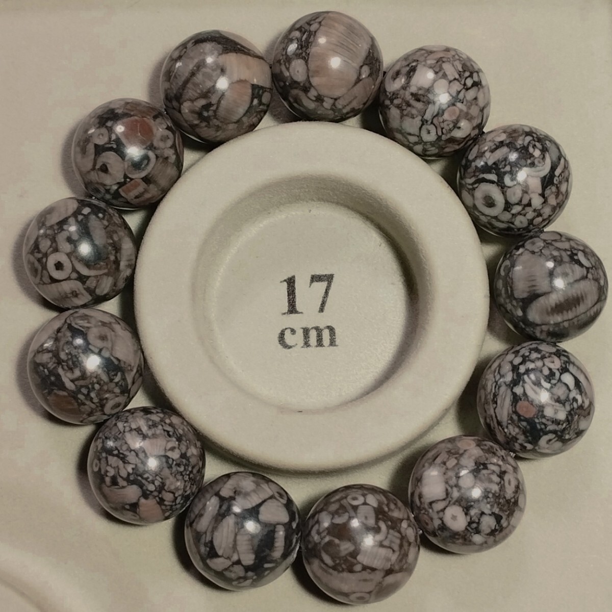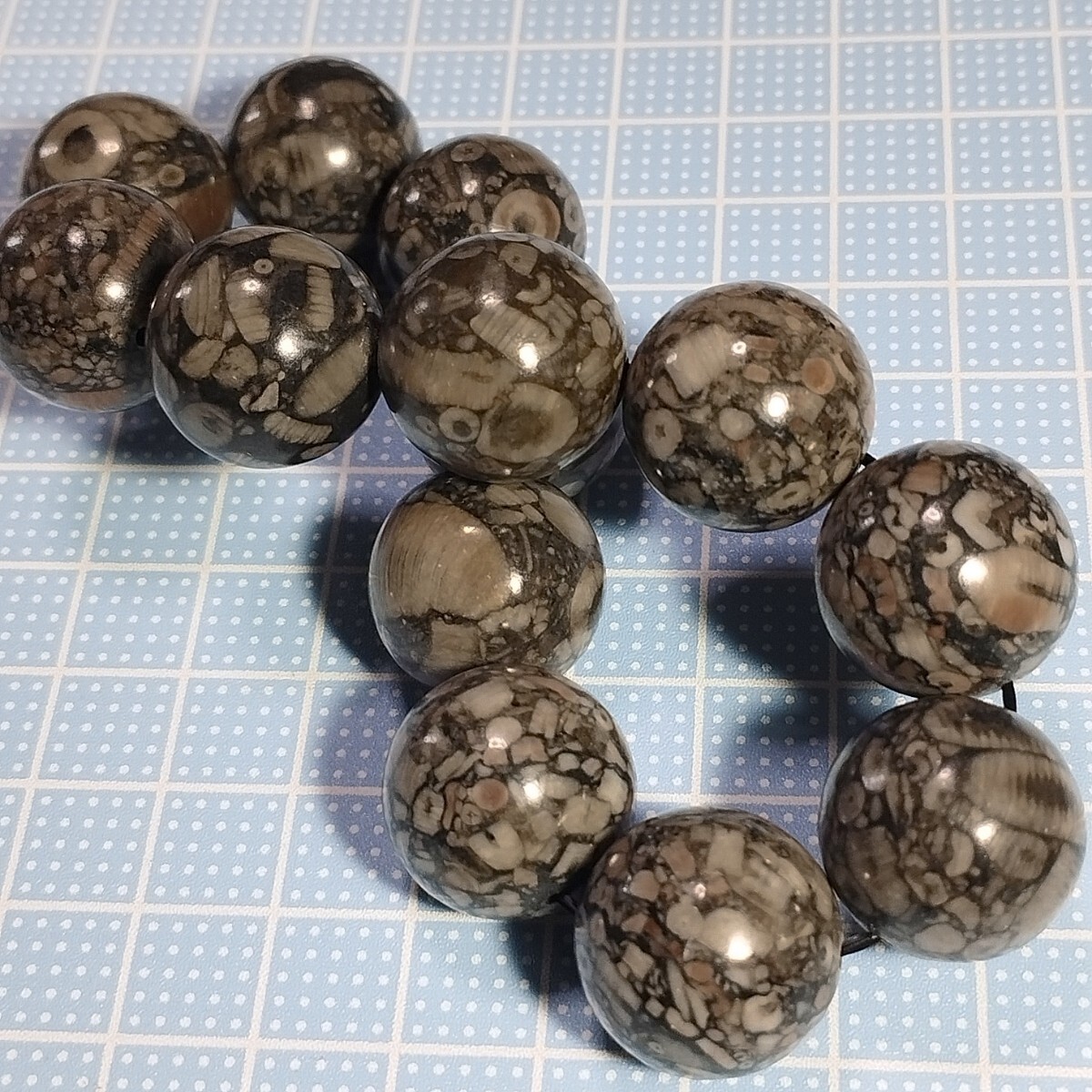 大玉で全ての粒にしっかりとウミユリの化石の模様が入ってます。