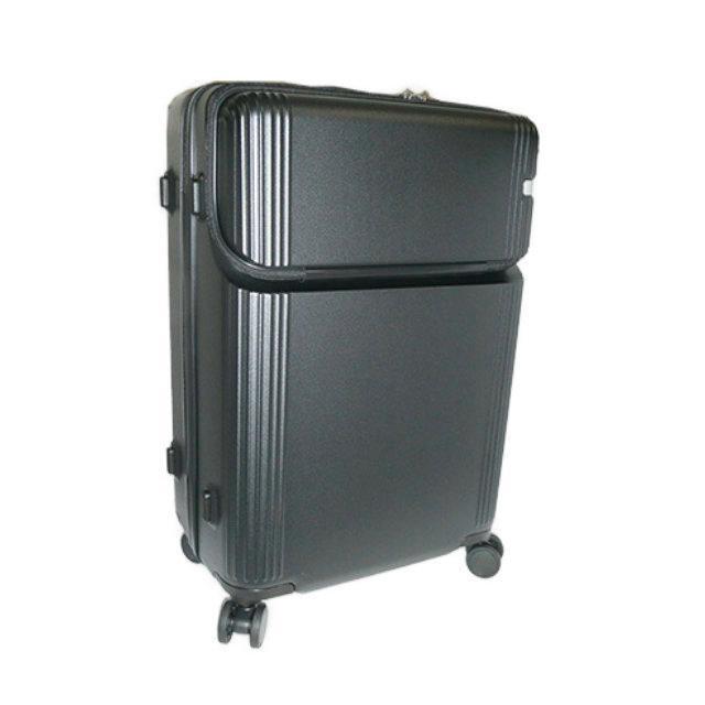 シンプルなデザインに、本革製のハンドルで高級感をプラスしたジッパーオープンのスーツケース。