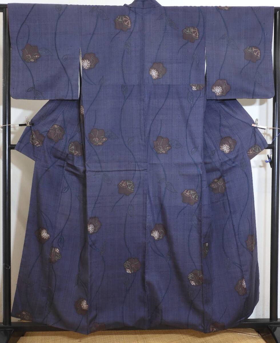 <銀の斧>正絹・手紡ぎ手織り生紬袷着物・染紬・現代サイズ・紫系
