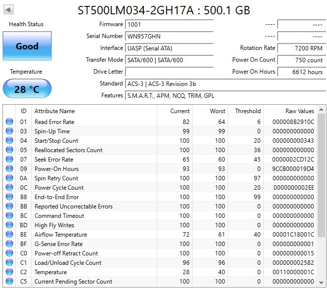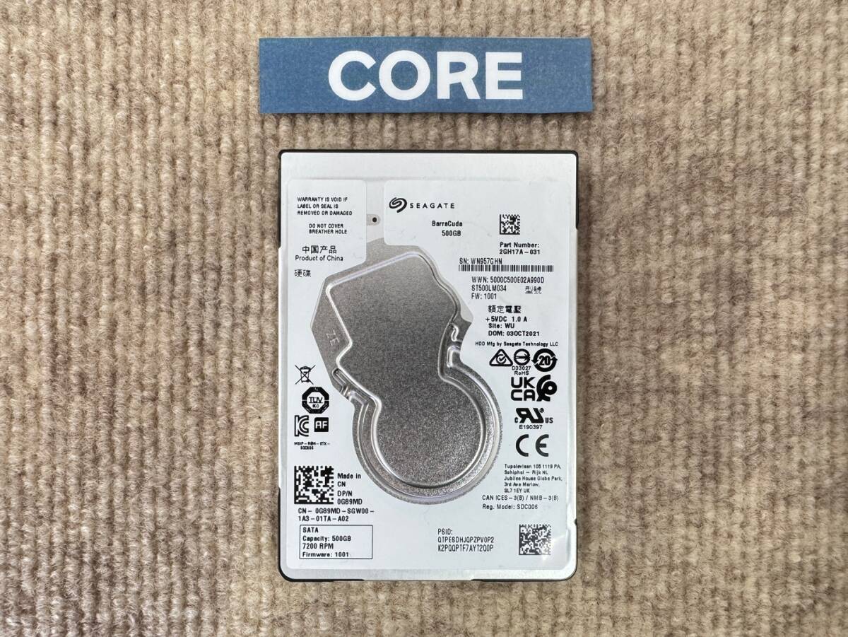 【使用時間:6612時間】Seagate BarraCuda SMR 500GB 2.5インチ SATA HDD Dell G89MD 2GH17A-031 ST500LM034 動作確認済 [PT783]